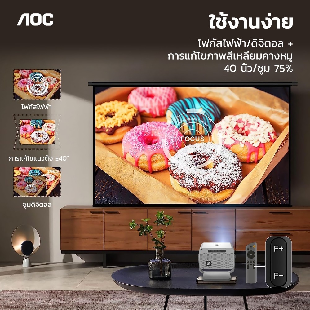 AOC-RS6 โปรเจคเตอร์ 4k Portable Mini Projector หน้าจอโทรศัพท์มือถือ การแก้ไขสี่เหลี่ยมคางหมูอัตโนมัติ 135°โปรเจ็กเตอร์โรงภาพยนตร์แบบหมุนได้สําหรับบ้าน มาพร้อม Netflix และ YouTube ในตัว