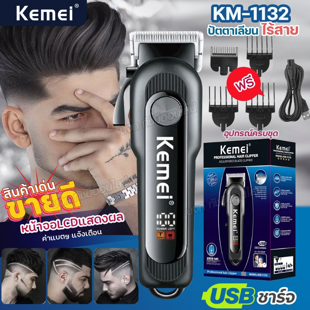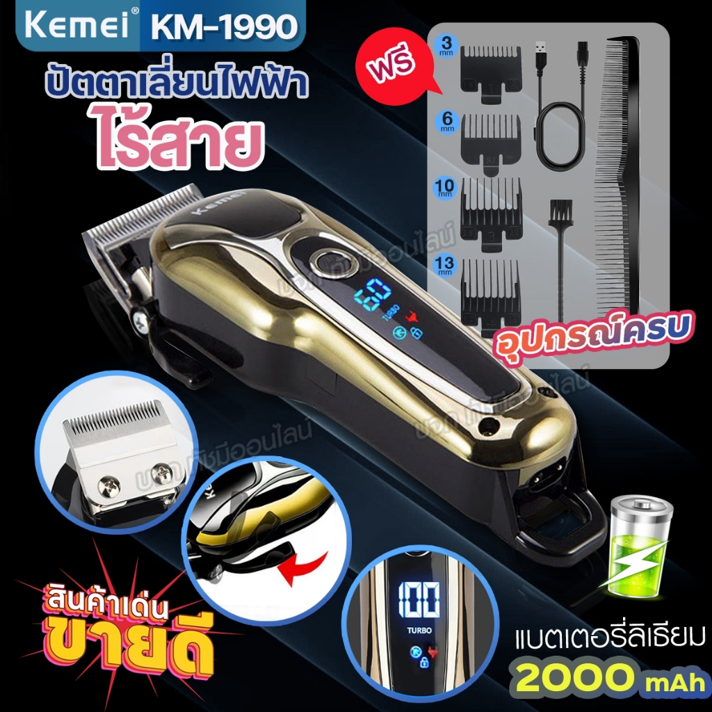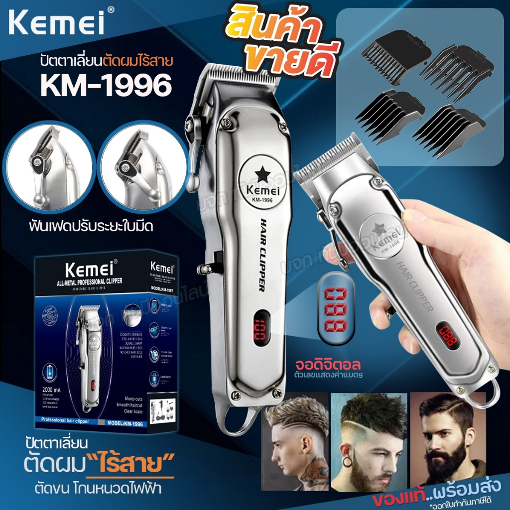ปัตตาเลี่ยน KEMAI KM-1996 และรุ่นอื่นๆ ไร้สาย ตัดผม โกนหนวด 👍อย่างดี ของแท้👍 LCDบอกแบต แบตอึด คมมาก