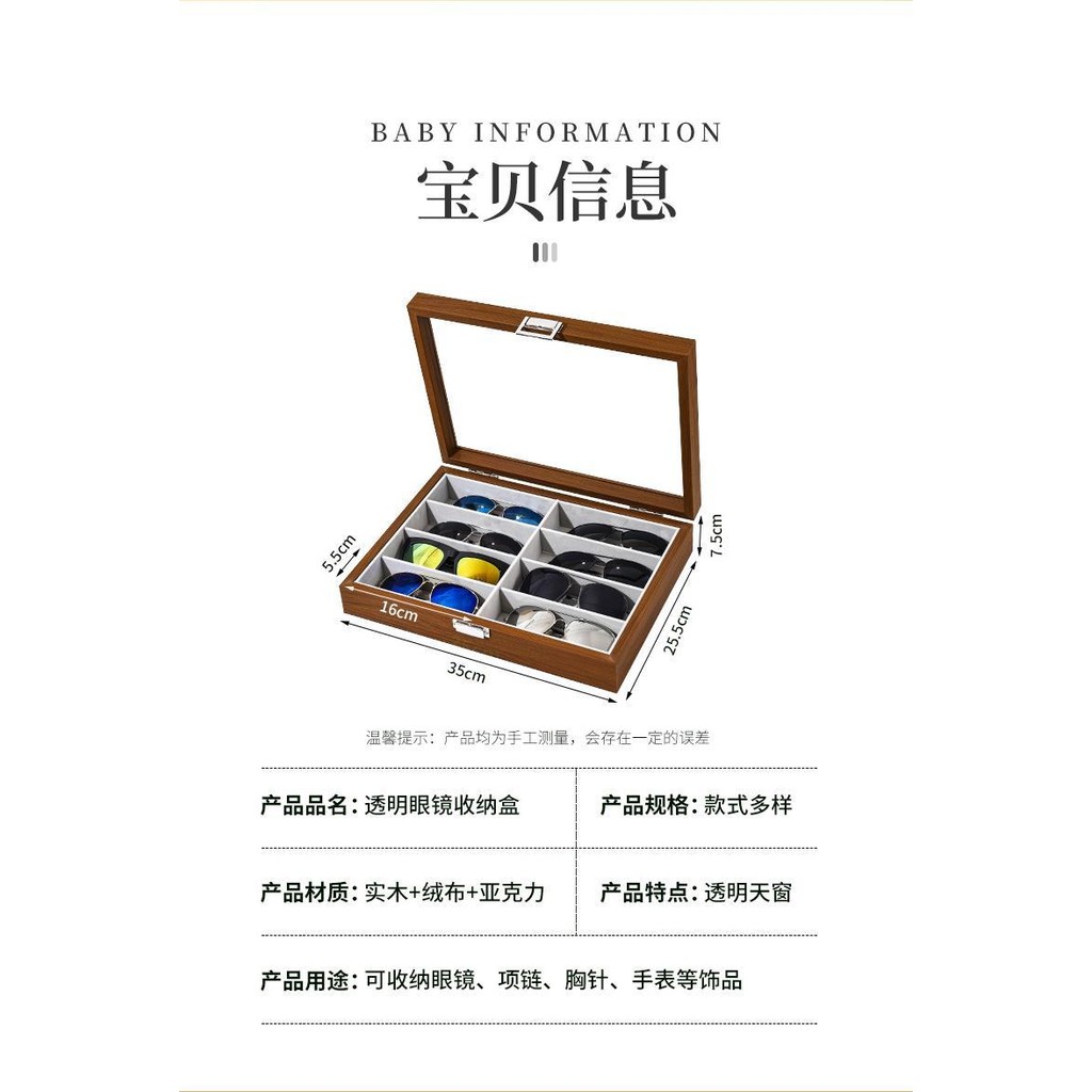 สีดำวอลนัท8กล่องเก็บแว่นตากันฝุ่นใสกล่องใส่แว่นตากันแดดใช้ในบ้านกล่องใส่แว่นตากล่องพิเศษ