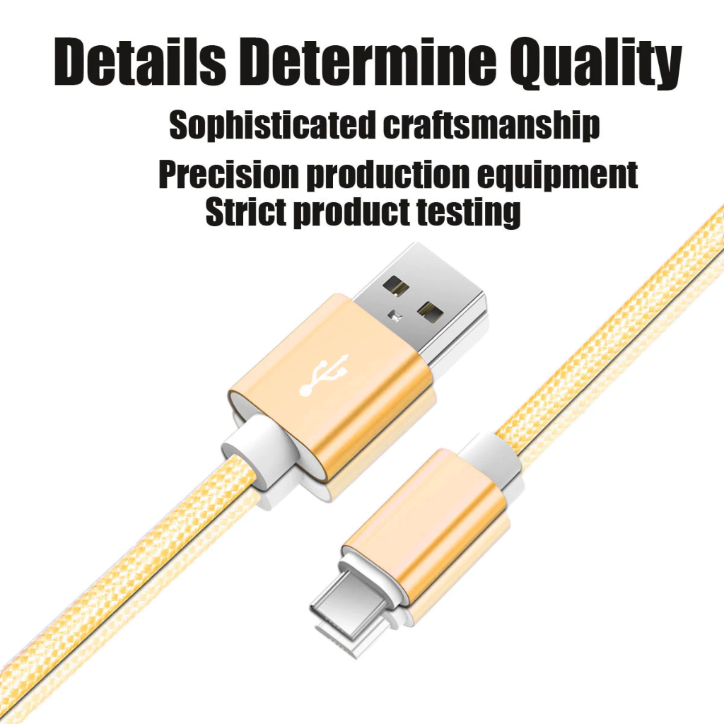 (COD) สายชาร์จ สายข้อมูล ไนล่อนถัก ชาร์จเร็ว สําหรับโทรศัพท์ Android Micro USB Type C