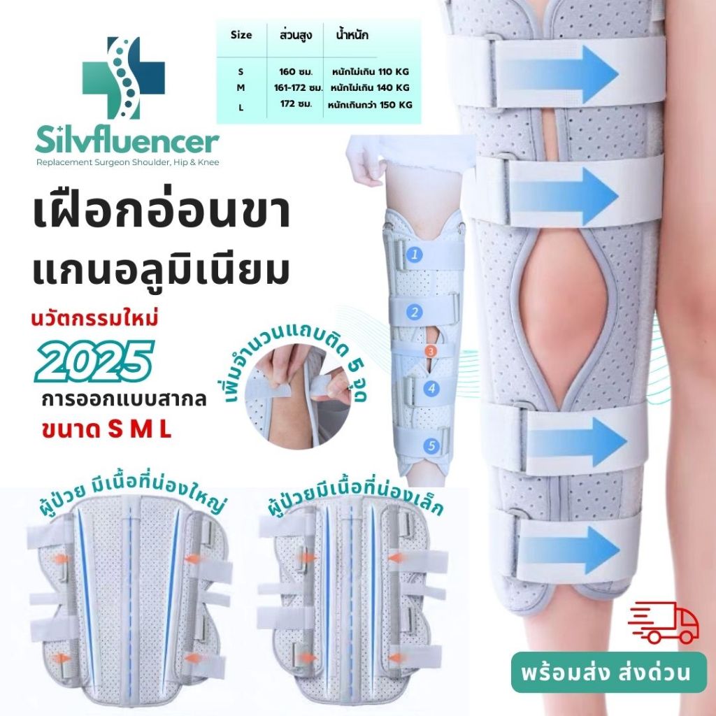 เฝือกขา ส่งด่วน เฝือกอ่อนหัวเข่าแบบผ้าแกนอลูมิเนียม อุปกรณ์พยุงเข่า ข้อเข่าเทียมทางการแพทย์
