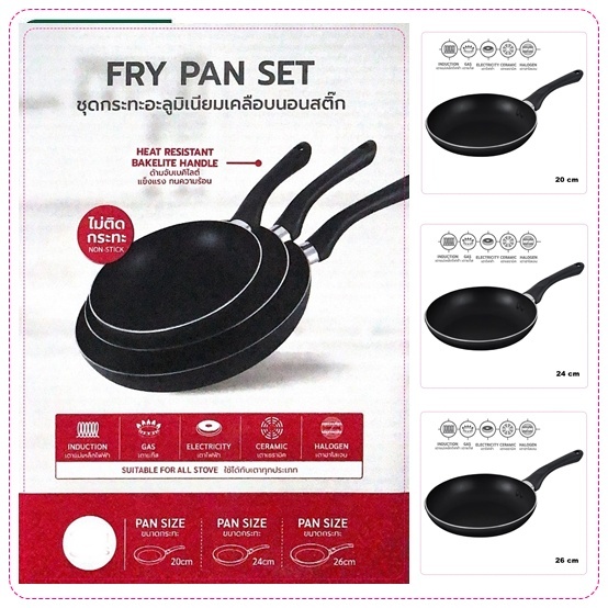 เบสิโคInductionกระทะอะลูมิเนียมเคลือบนอนสติ๊กรุ่น20 24 26 นิ้วใช้ได้กับเตาทุกชนิดและเตาแม่เหล็กไฟฟ้า