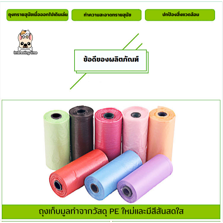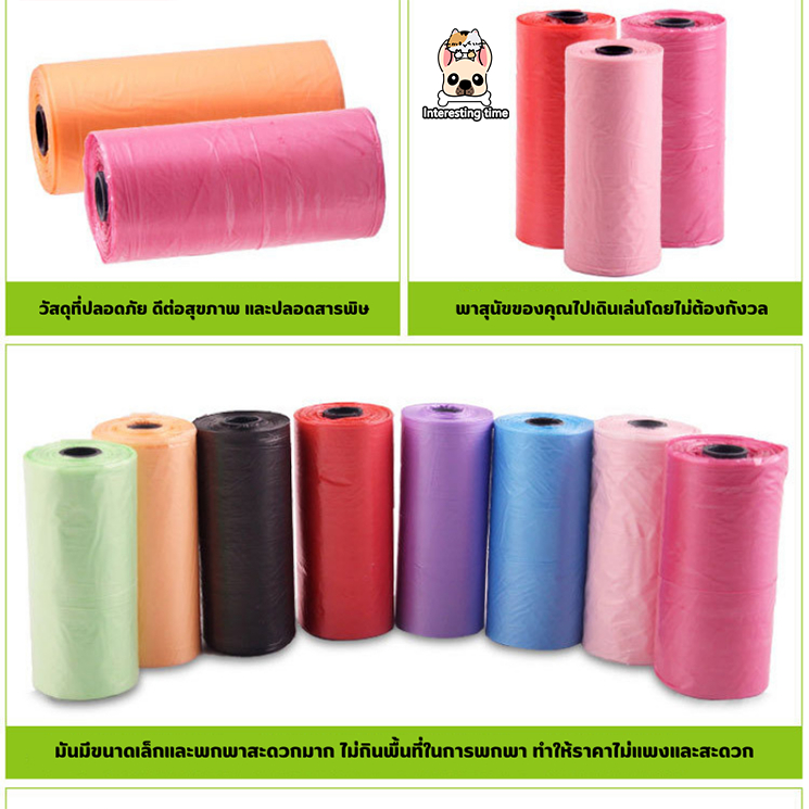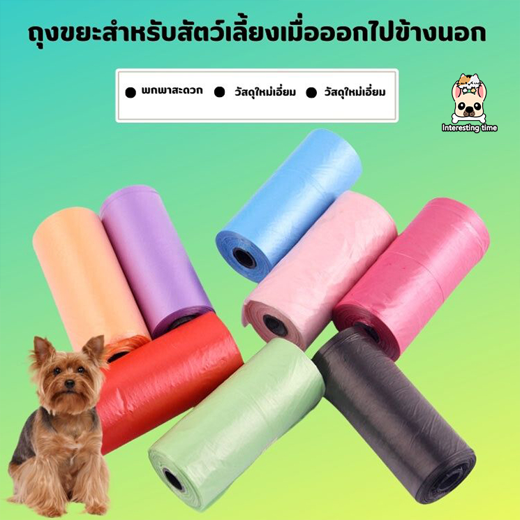 ถุงเก็บอึสัตว์เลี้ยง💩 ถุงเก็บมูลสัตว์เลี้ยง มูลสุนัข มูลแมว ถุงขยะเก็บมูลสัตว์เลี้ยง 1 ม้วน / 15 ชิ้น pet garbage bag