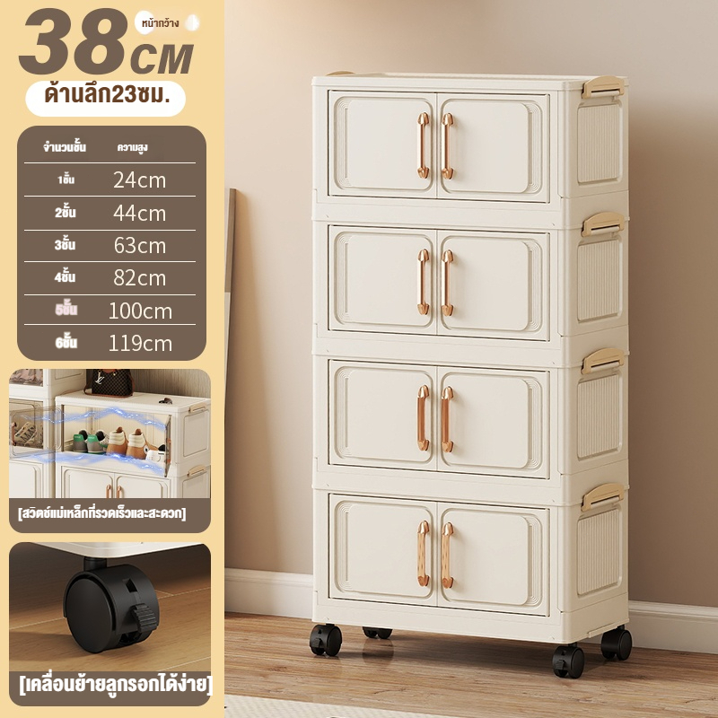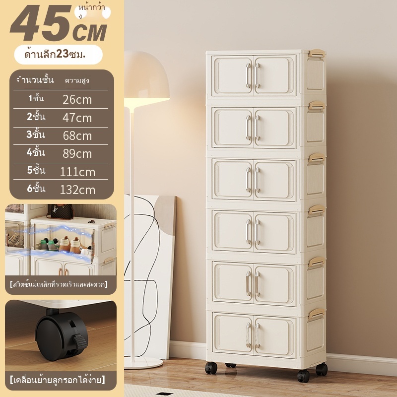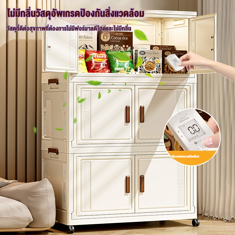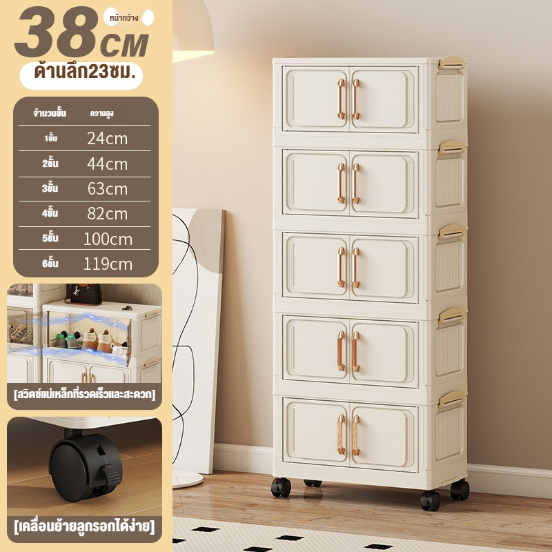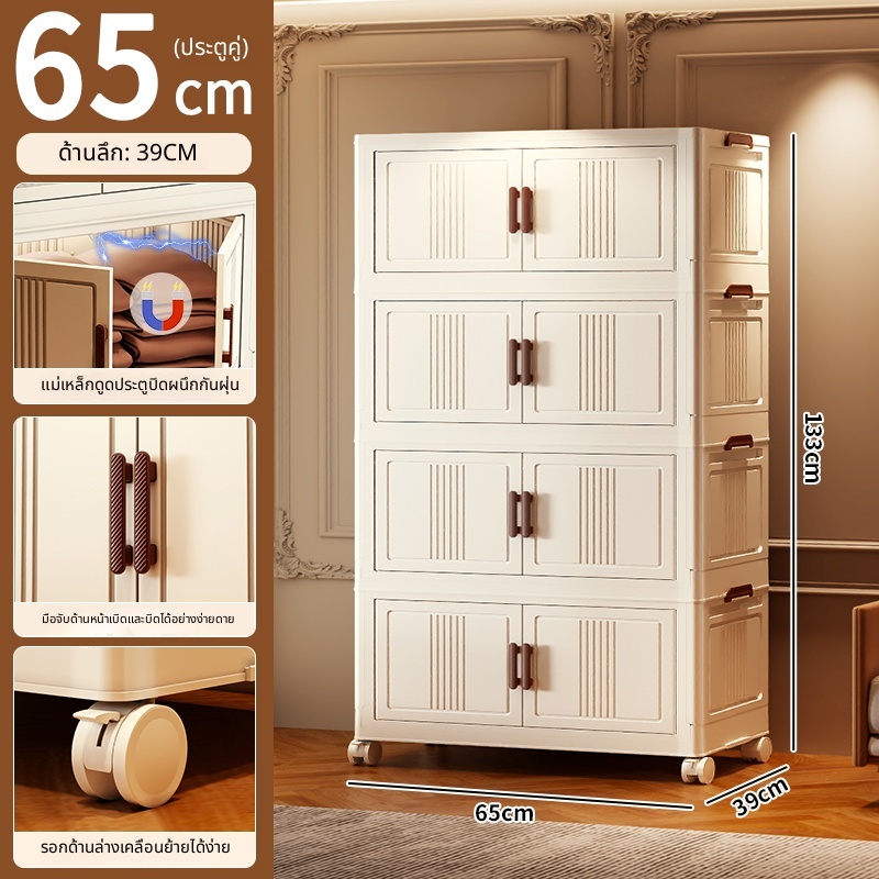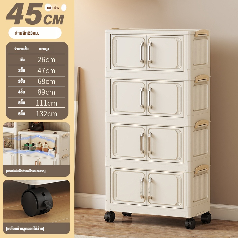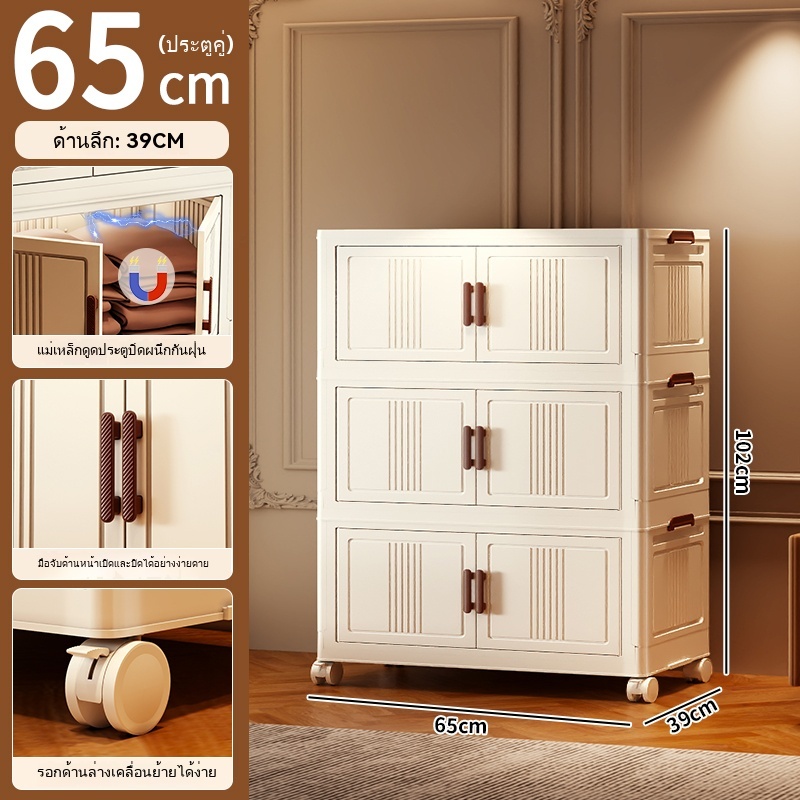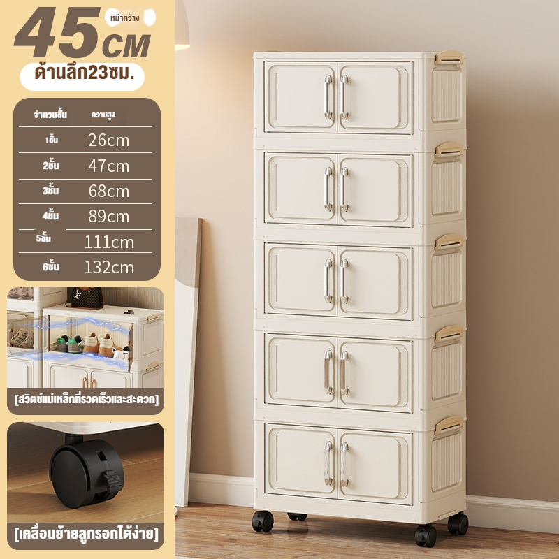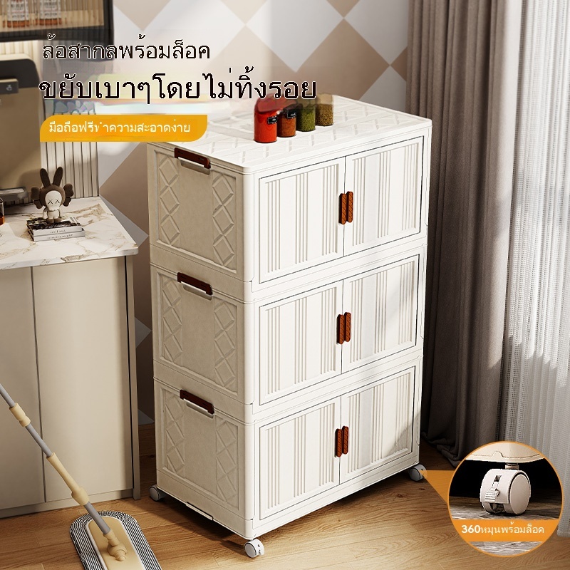 ตู้เก็บของขนาดใหญ่ 70cm 5 ชั้น ละโปร่งใส ตู้เก็บของพลาสติกมัลติฟังก์ชั่นตู้เก็บของตู้เสื้อผ้าที่มีล้อสามารถพับเก็บได้