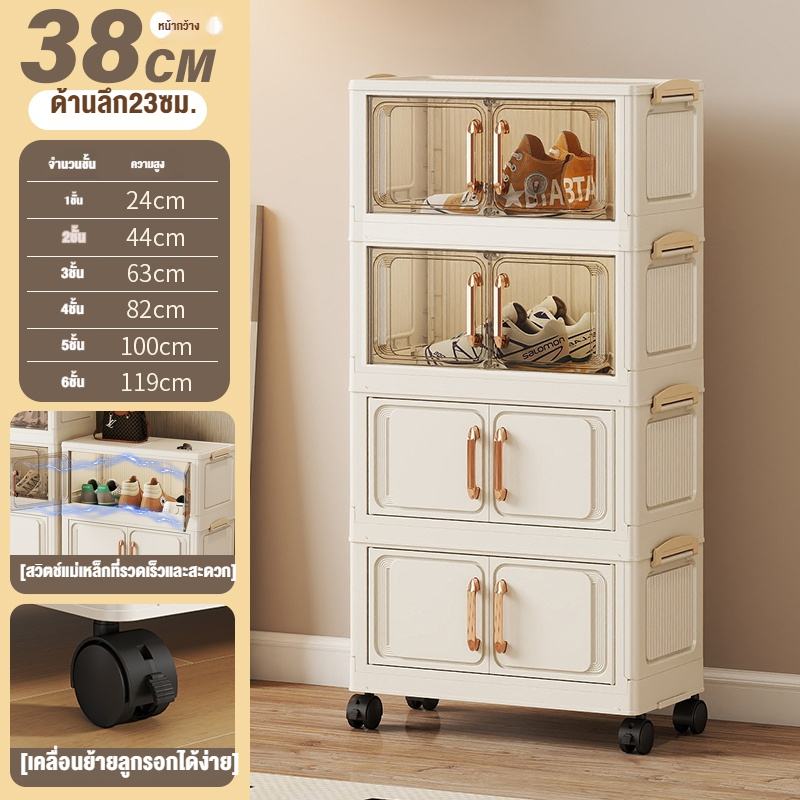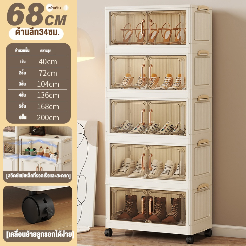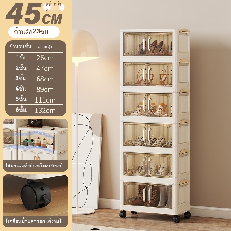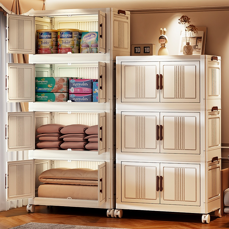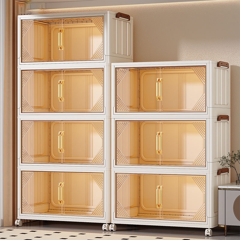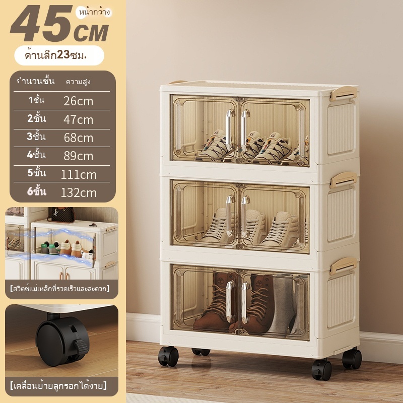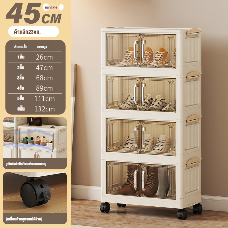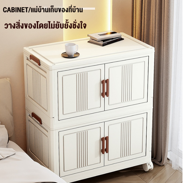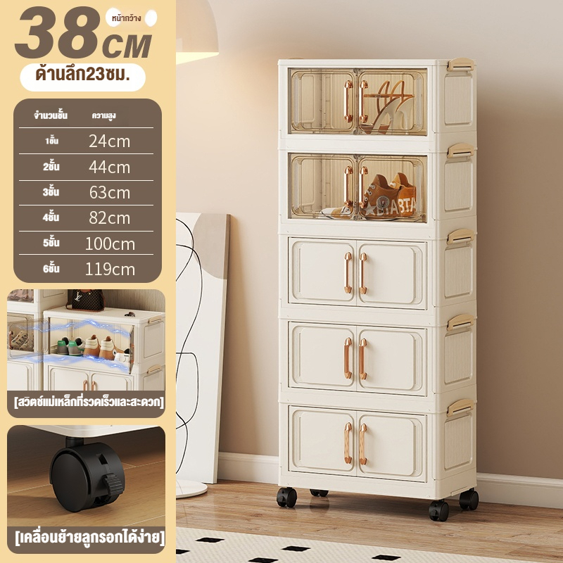 ตู้เก็บของขนาดใหญ่ 70cm 5 ชั้น ละโปร่งใส ตู้เก็บของพลาสติกมัลติฟังก์ชั่นตู้เก็บของตู้เสื้อผ้าที่มีล้อสามารถพับเก็บได้