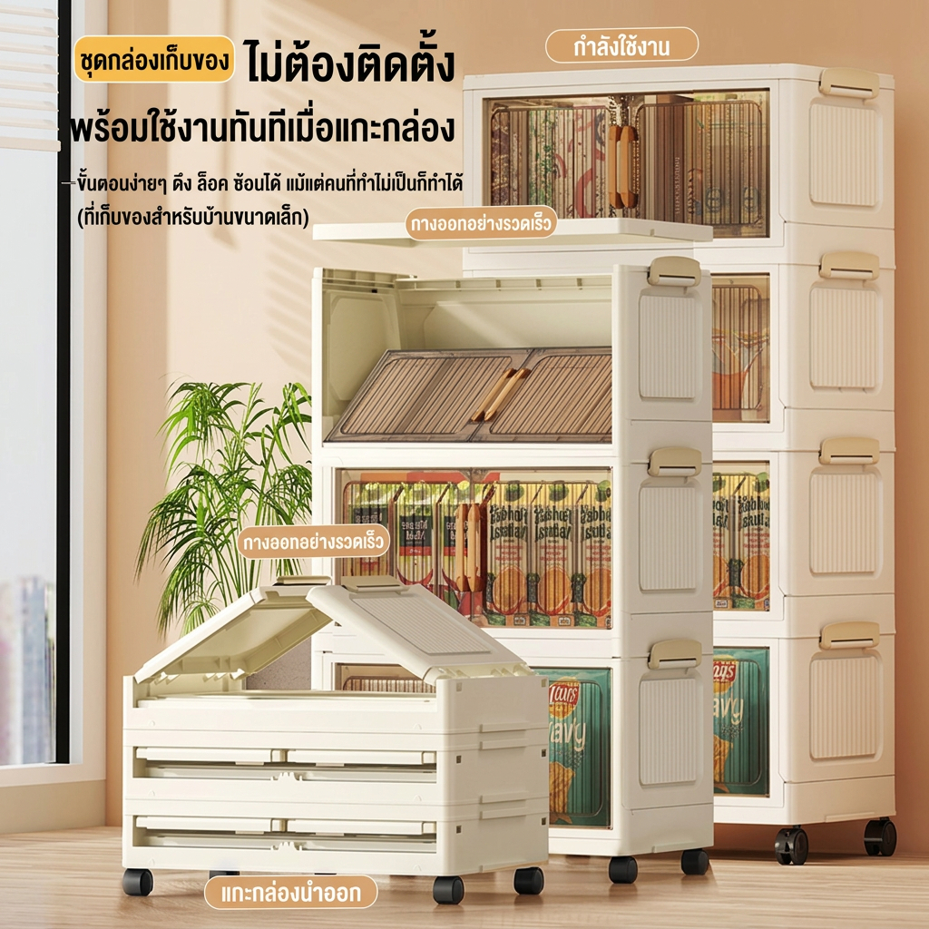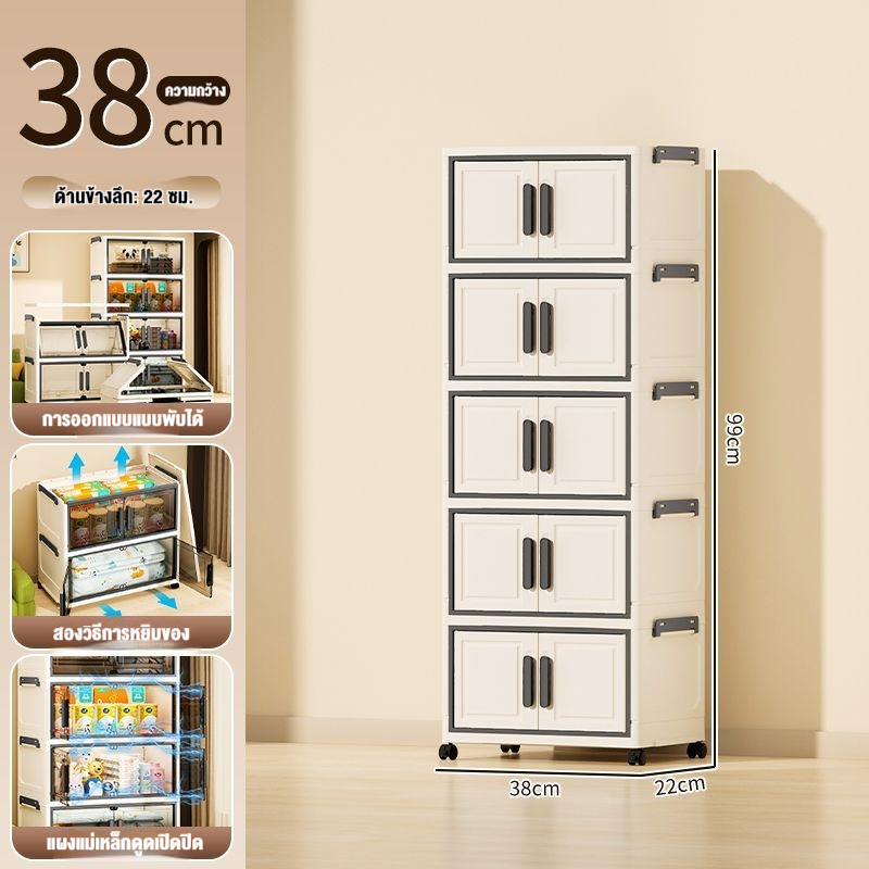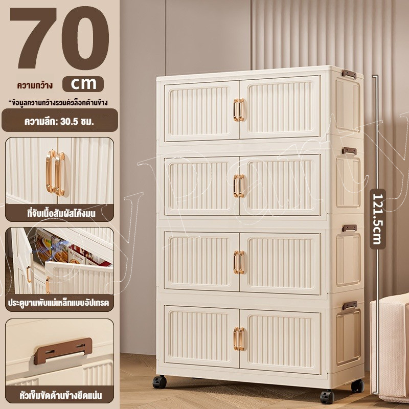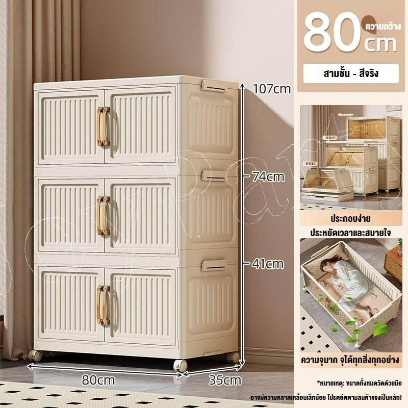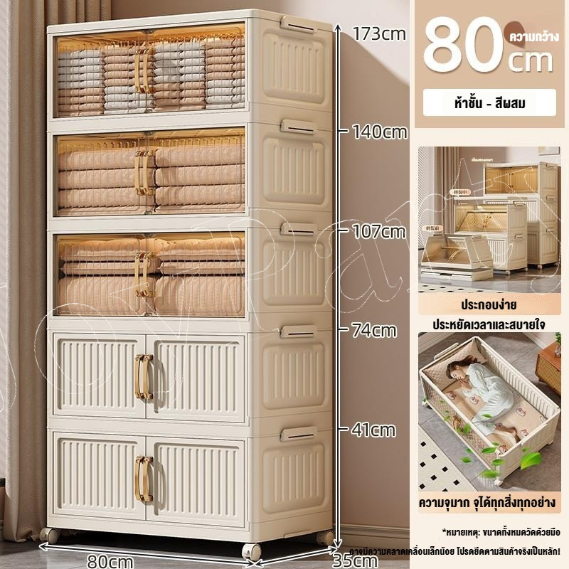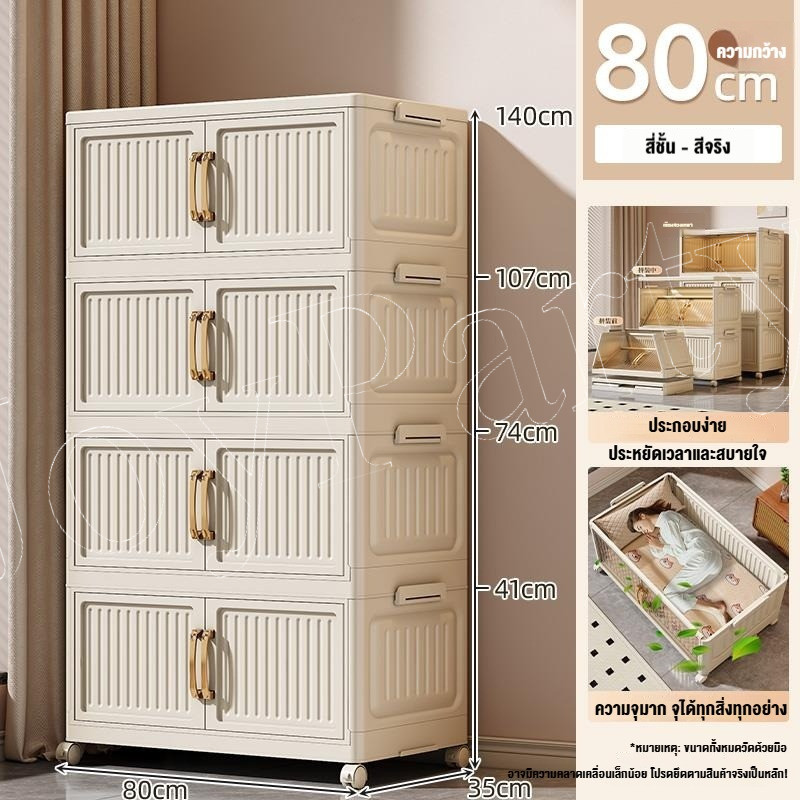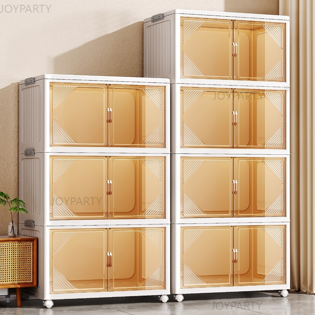 JoyParty ตู้เก็บของพลาสติก ตู้อเนกประสงค์ ความจุแบริ่ง 200KG ลิ้นชักขนาดใหญ่ ตู้เสื้อผ้าที่มีล้อสามารถพับเก็บได้ สไตล