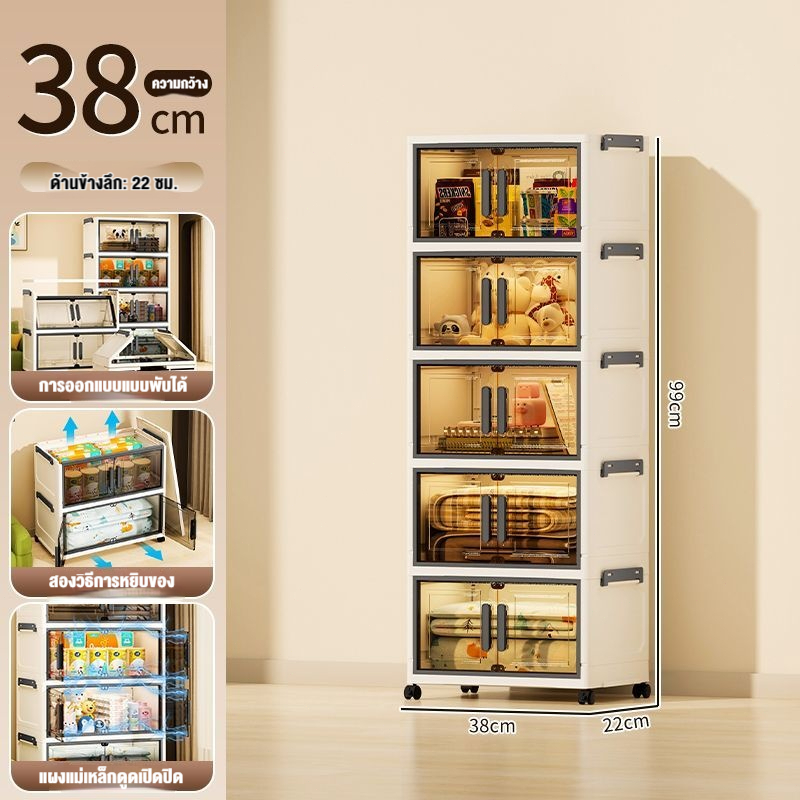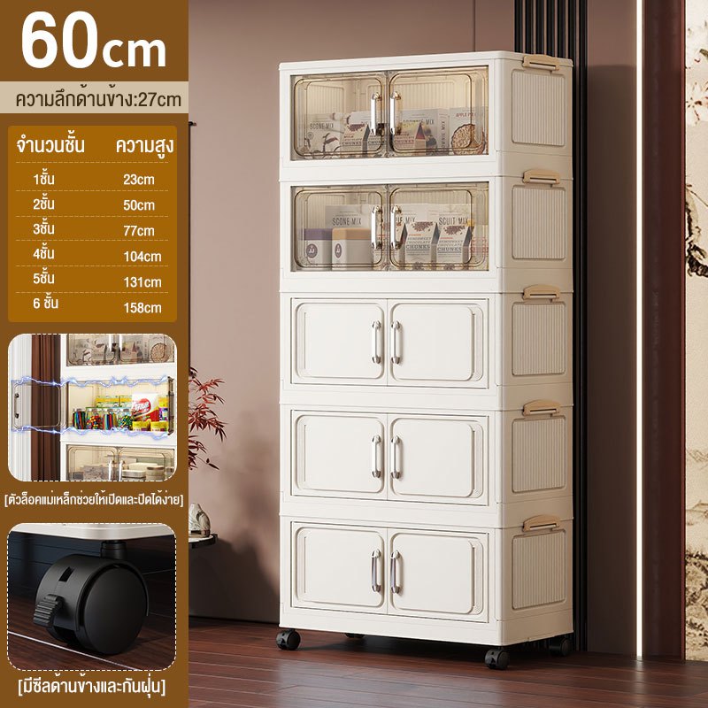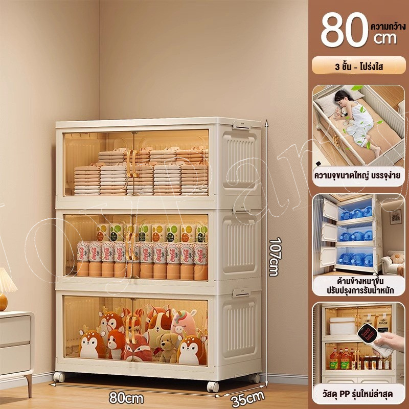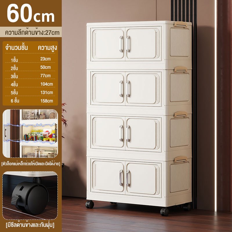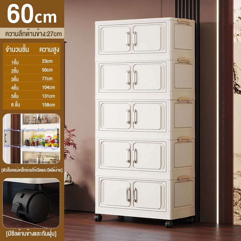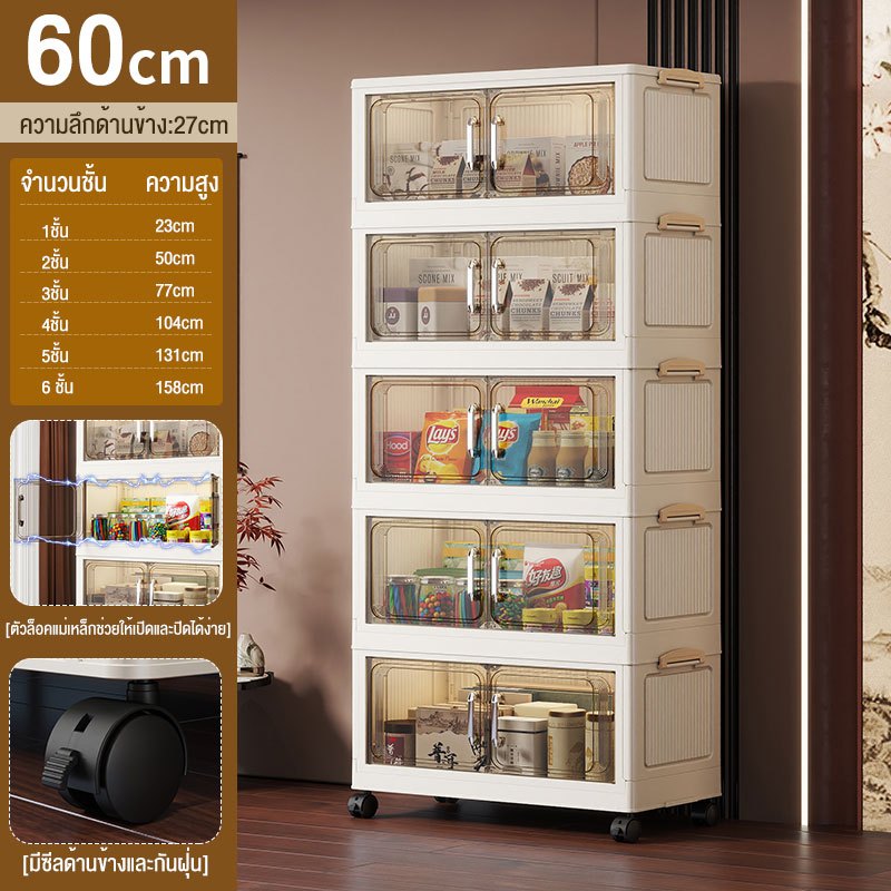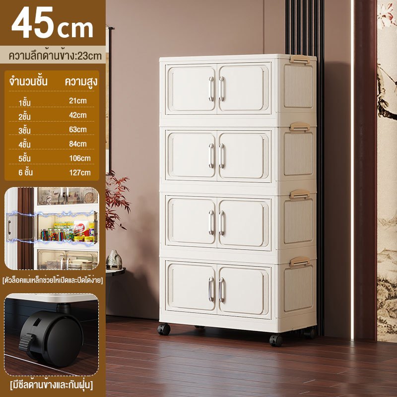 JoyParty ตู้เก็บของพลาสติก ตู้อเนกประสงค์ ความจุแบริ่ง 200KG ลิ้นชักขนาดใหญ่ ตู้เสื้อผ้าที่มีล้อสามารถพับเก็บได้ สไตล