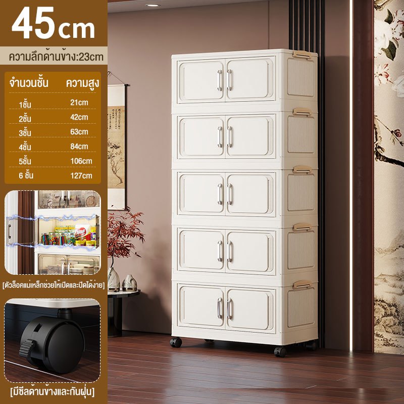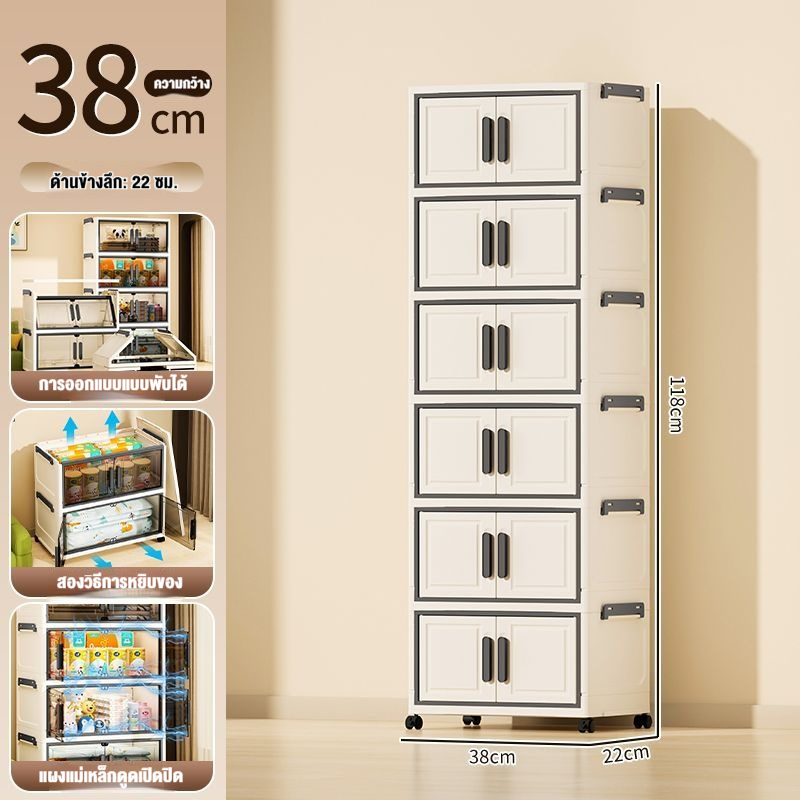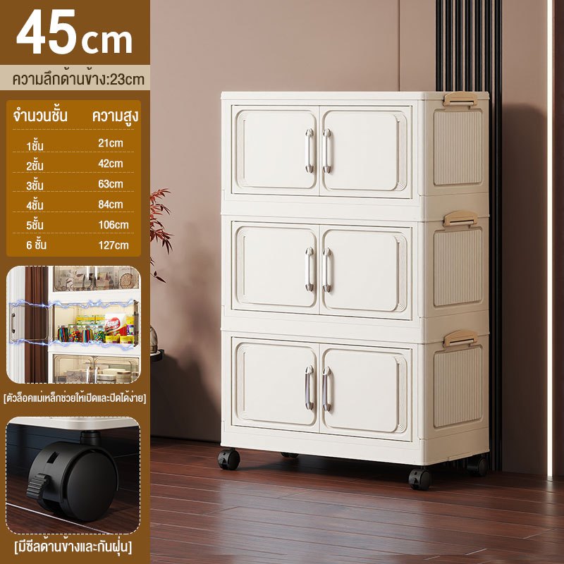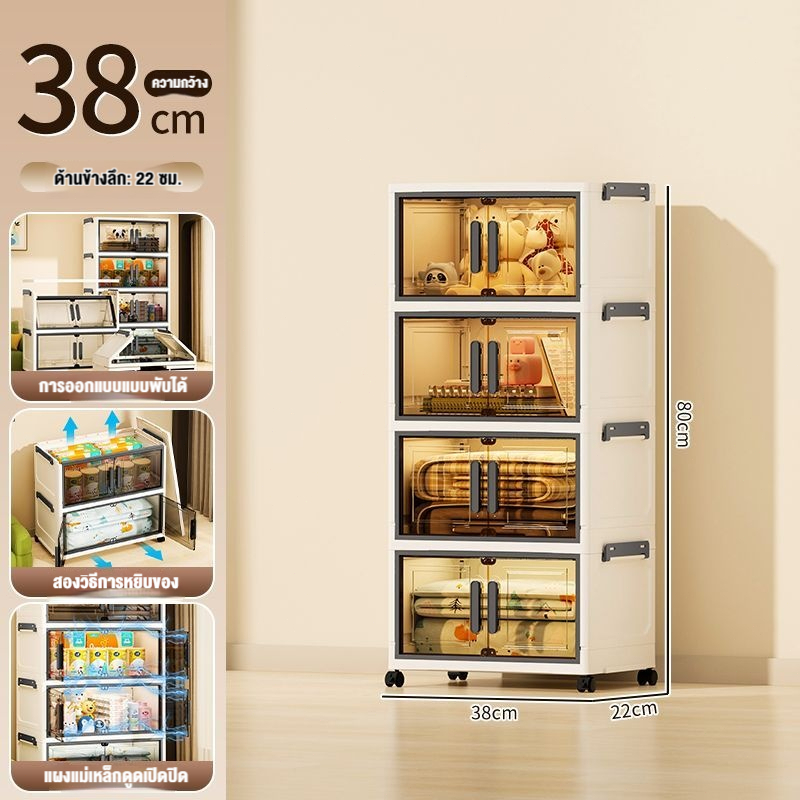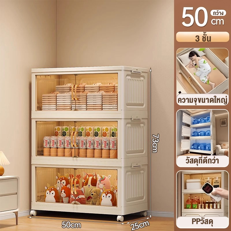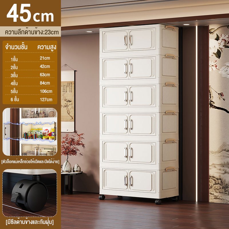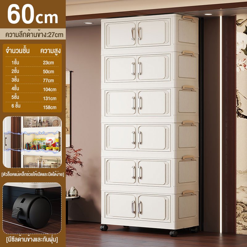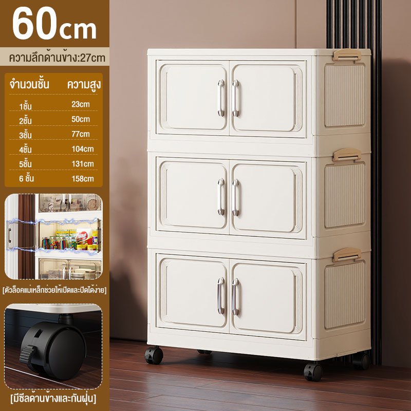 JoyParty ตู้เก็บของพลาสติก ตู้อเนกประสงค์ ความจุแบริ่ง 200KG ลิ้นชักขนาดใหญ่ ตู้เสื้อผ้าที่มีล้อสามารถพับเก็บได้ สไตล