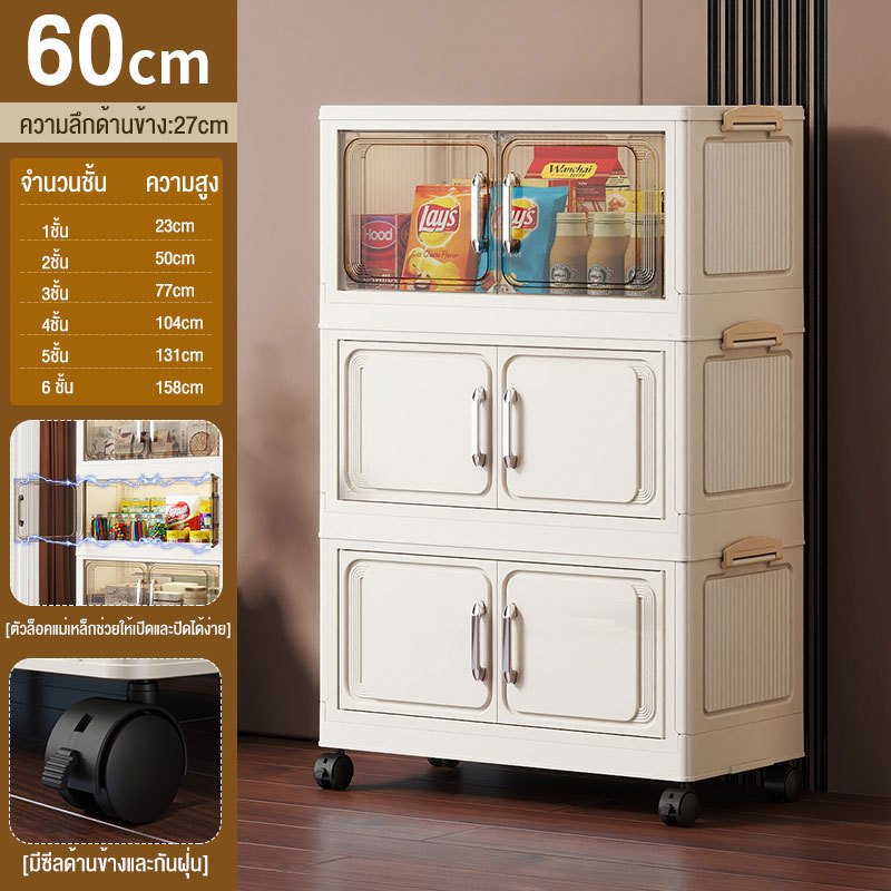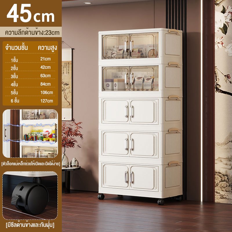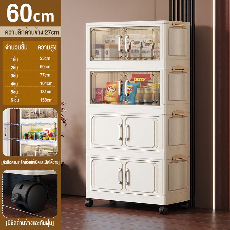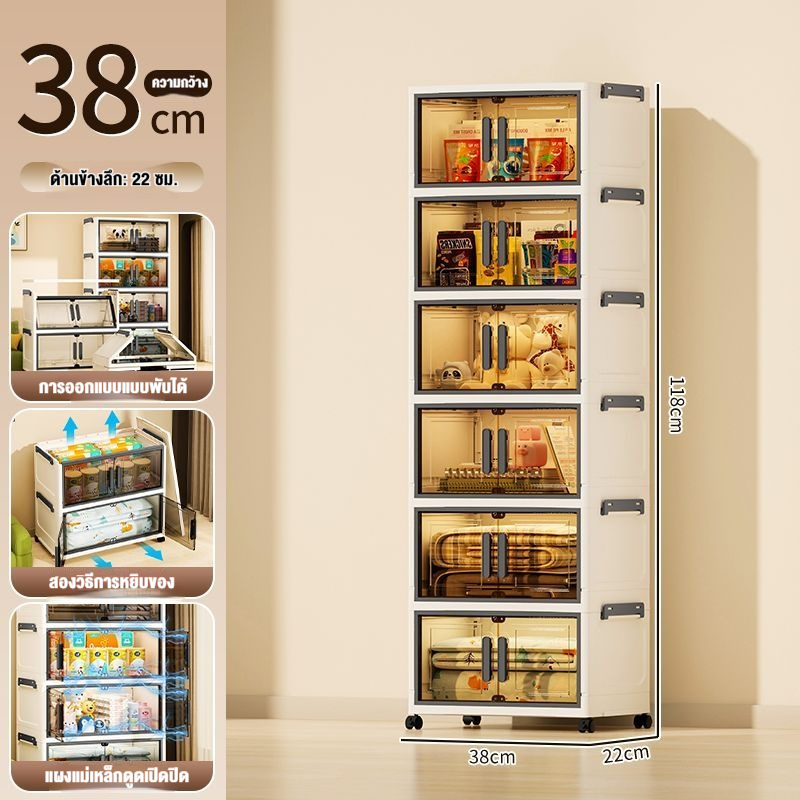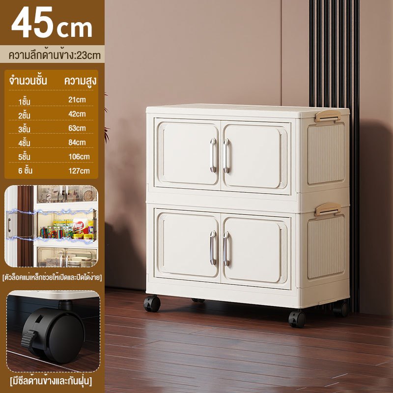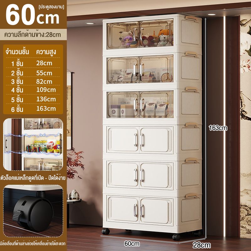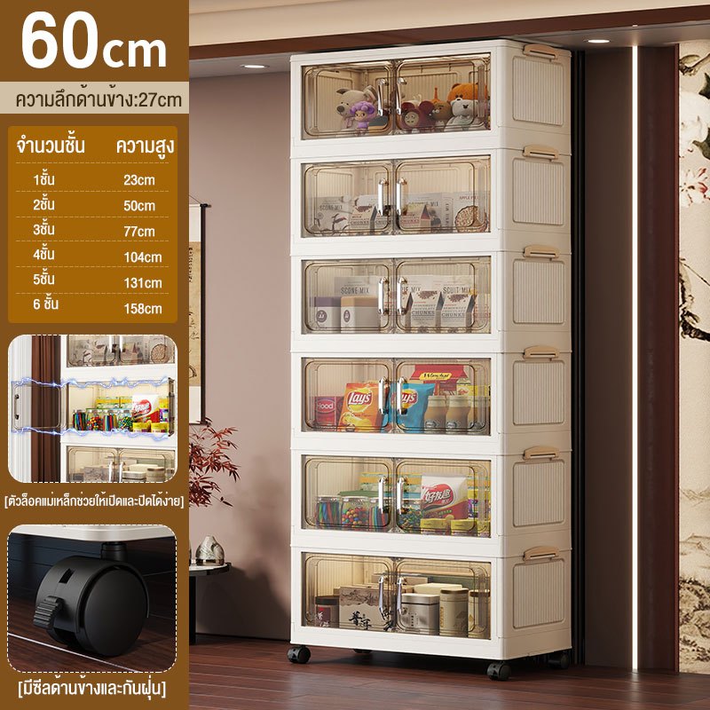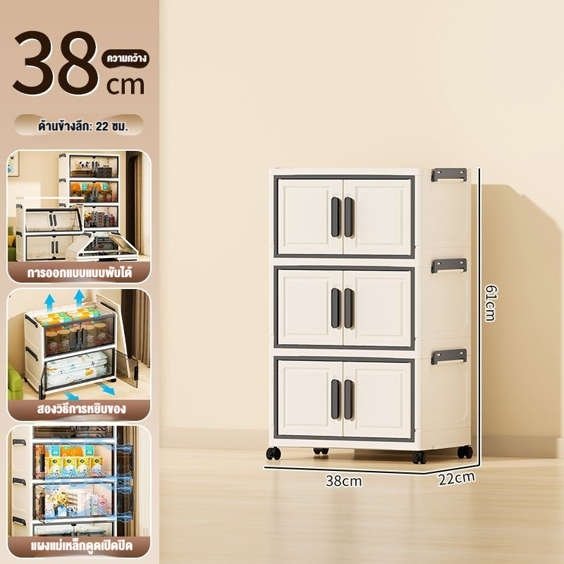 JoyParty ตู้เก็บของพลาสติก ตู้อเนกประสงค์ ความจุแบริ่ง 200KG ลิ้นชักขนาดใหญ่ ตู้เสื้อผ้าที่มีล้อสามารถพับเก็บได้ สไตล