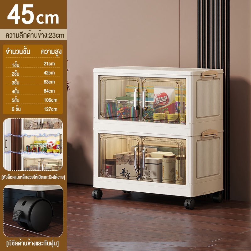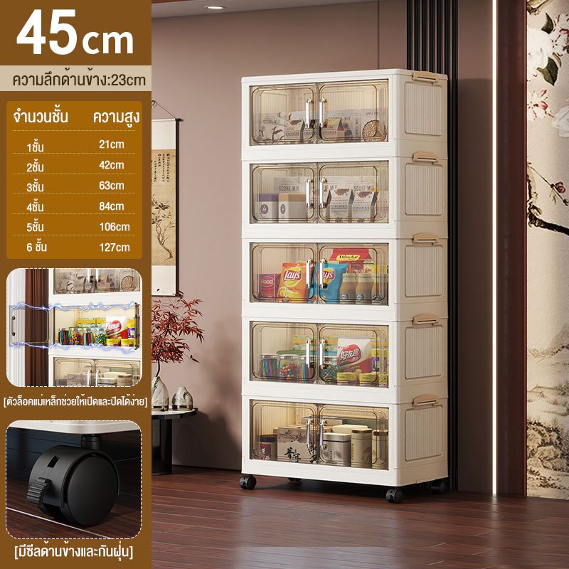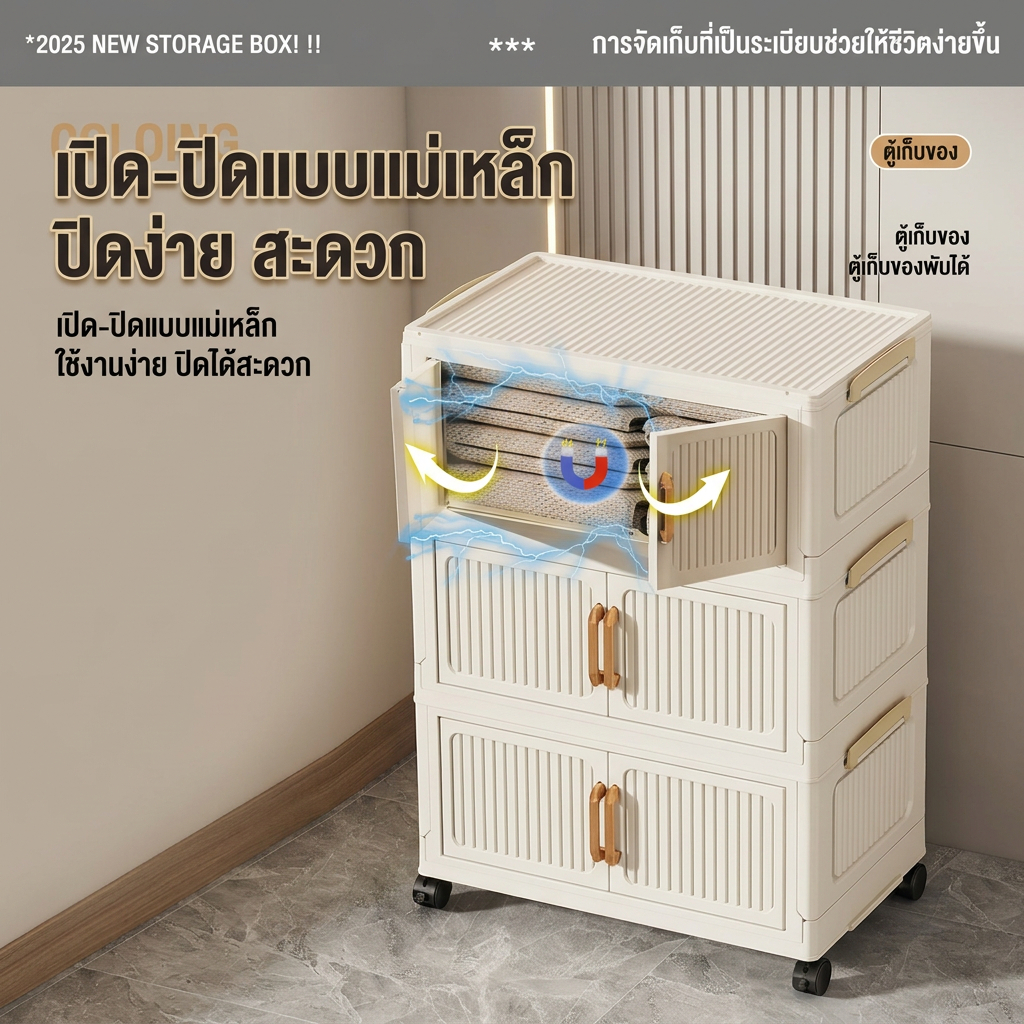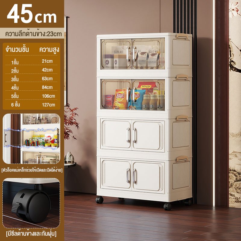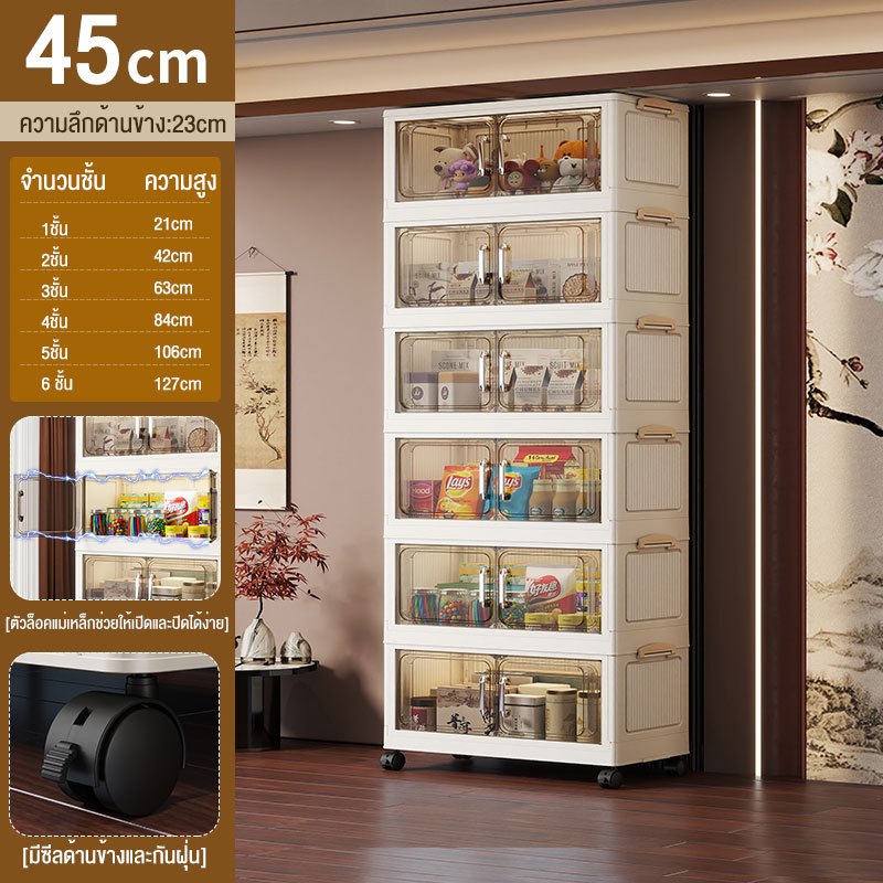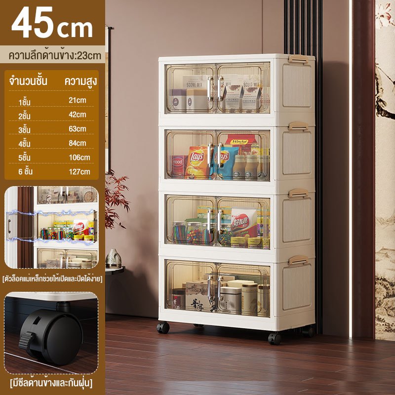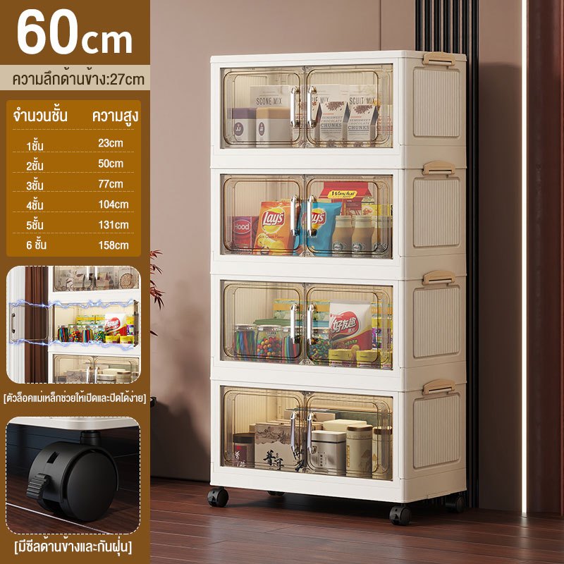 JoyParty ตู้เก็บของพลาสติก ตู้อเนกประสงค์ ความจุแบริ่ง 200KG ลิ้นชักขนาดใหญ่ ตู้เสื้อผ้าที่มีล้อสามารถพับเก็บได้ สไตล