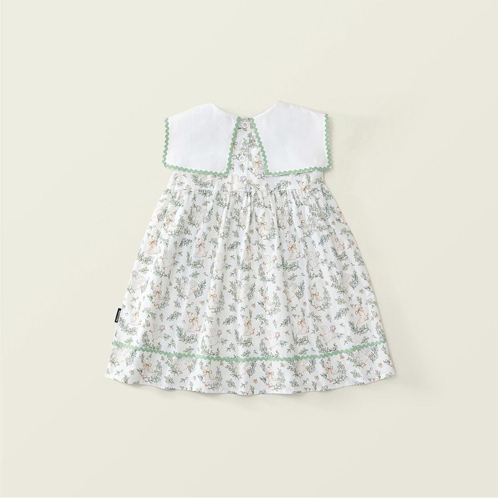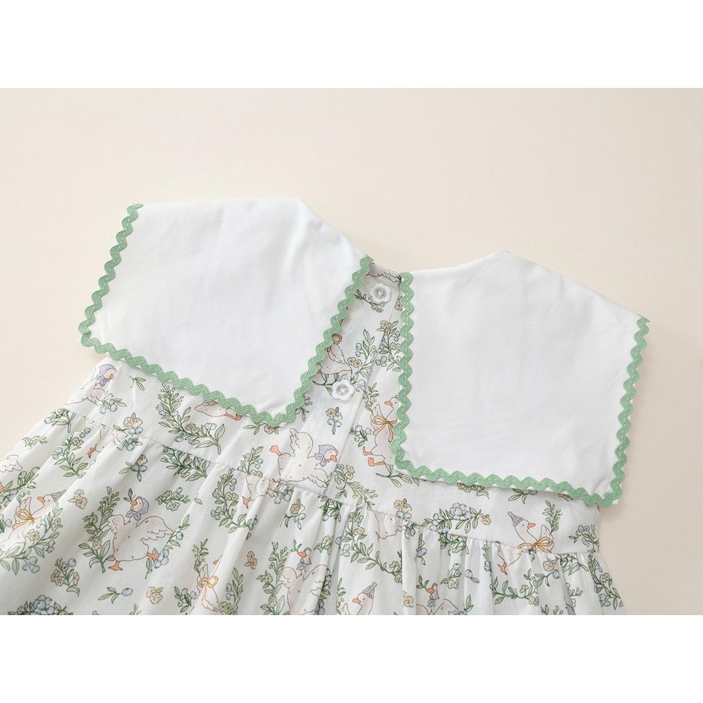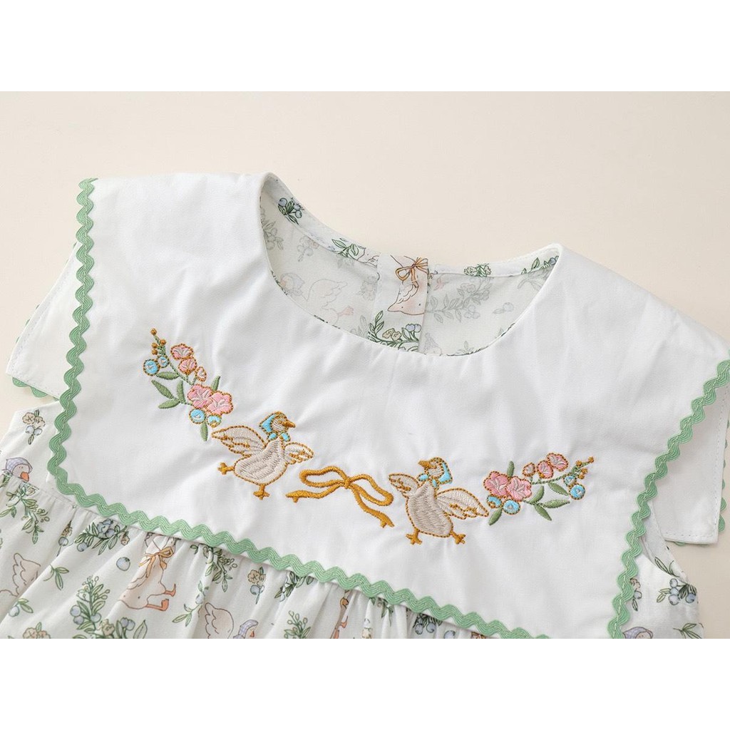 Hania kids เดรสเด็กผู้หญิงสีพาสเทล ปกใหญ่ลายปักวินเทจ - K5125715