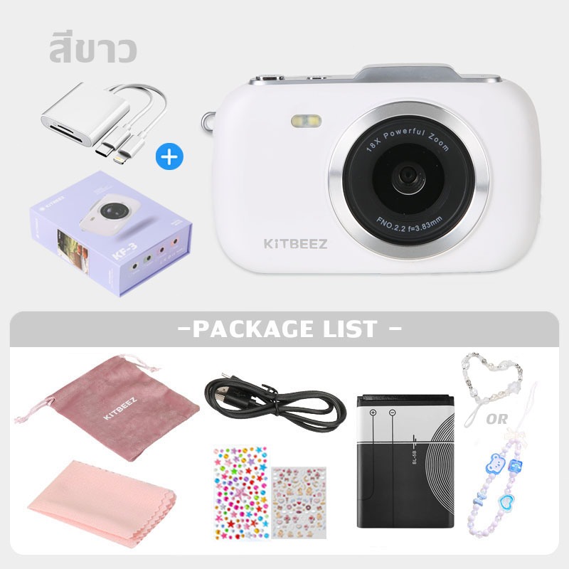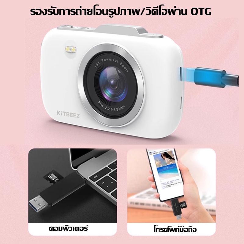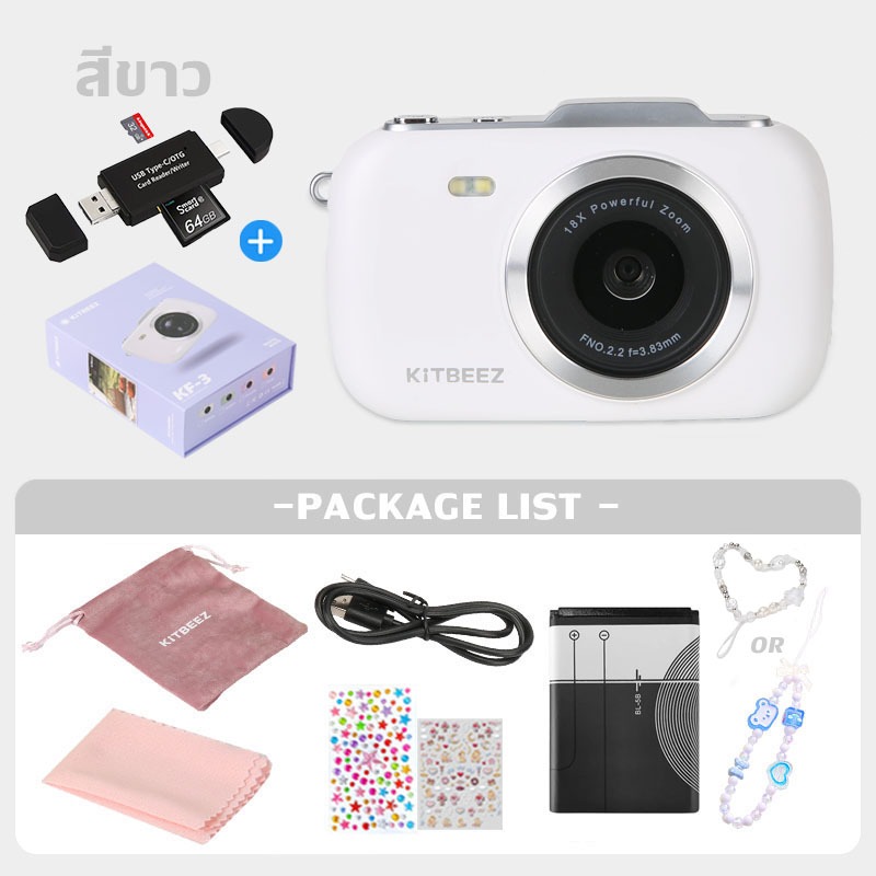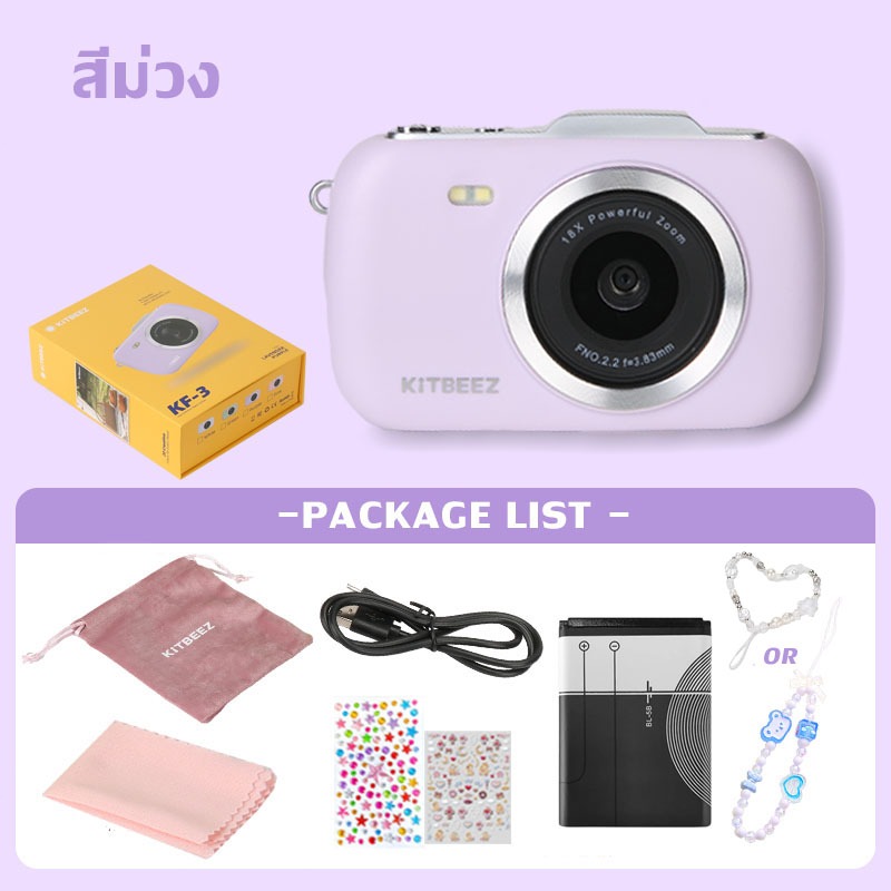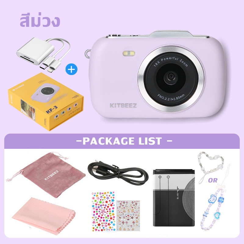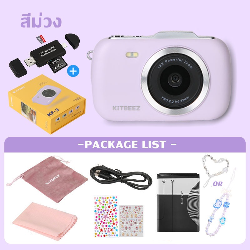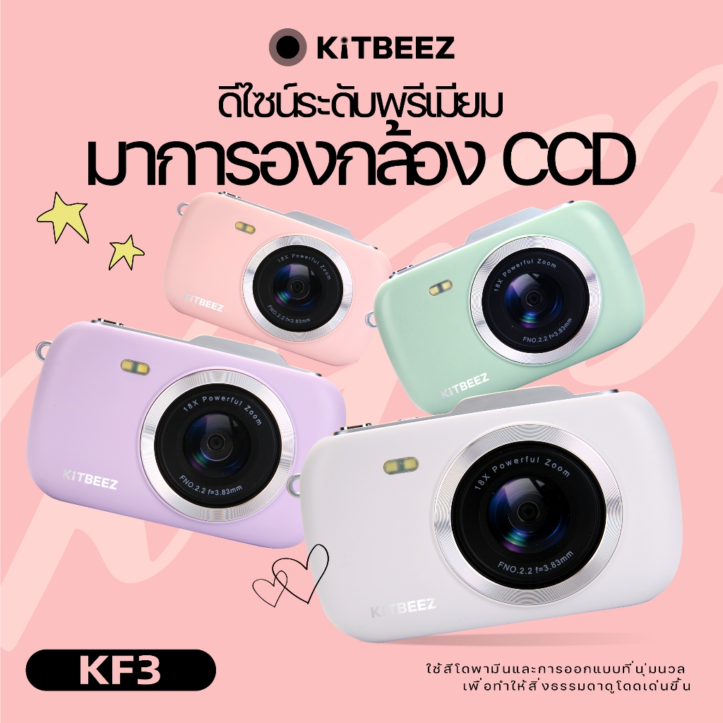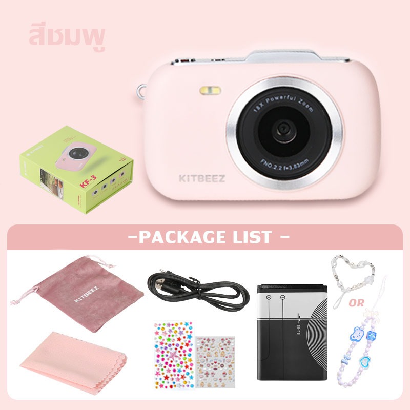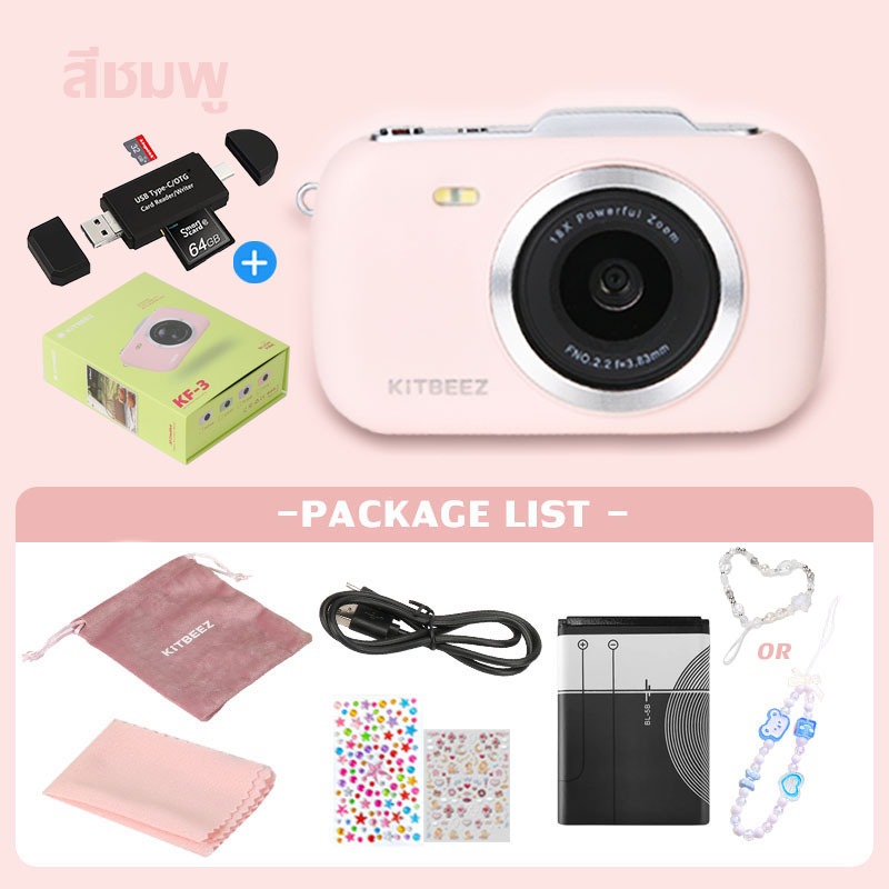 KF-3 กล้องดิจิตอล 64MP 4Kวีดีโอ ซูม18X กล้องน่ารักกล้องมาคารอง 4สีให้เลือก พร้อมแฟลชฟิลเตอร์ในตัว พกพาสะดวกของขวัญให้แฟน