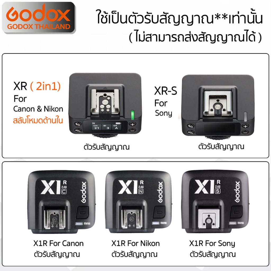 Godox Trigger XR, X1R - Receiver ตัวรับสัญญาณ 2.4GHz ใช้กับ X1T, X2T, X3, XT32, Xpro, XProII, etc / Godox Thailand