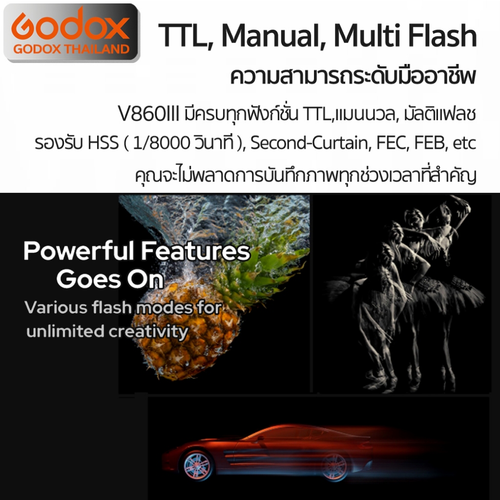 Godox Flash V860III 72W, TTL, HSS, Lithium Battery ( VB30, X2T, XProII, SA-K6, SGGV ) / Godox Thailand
