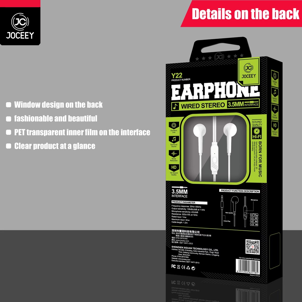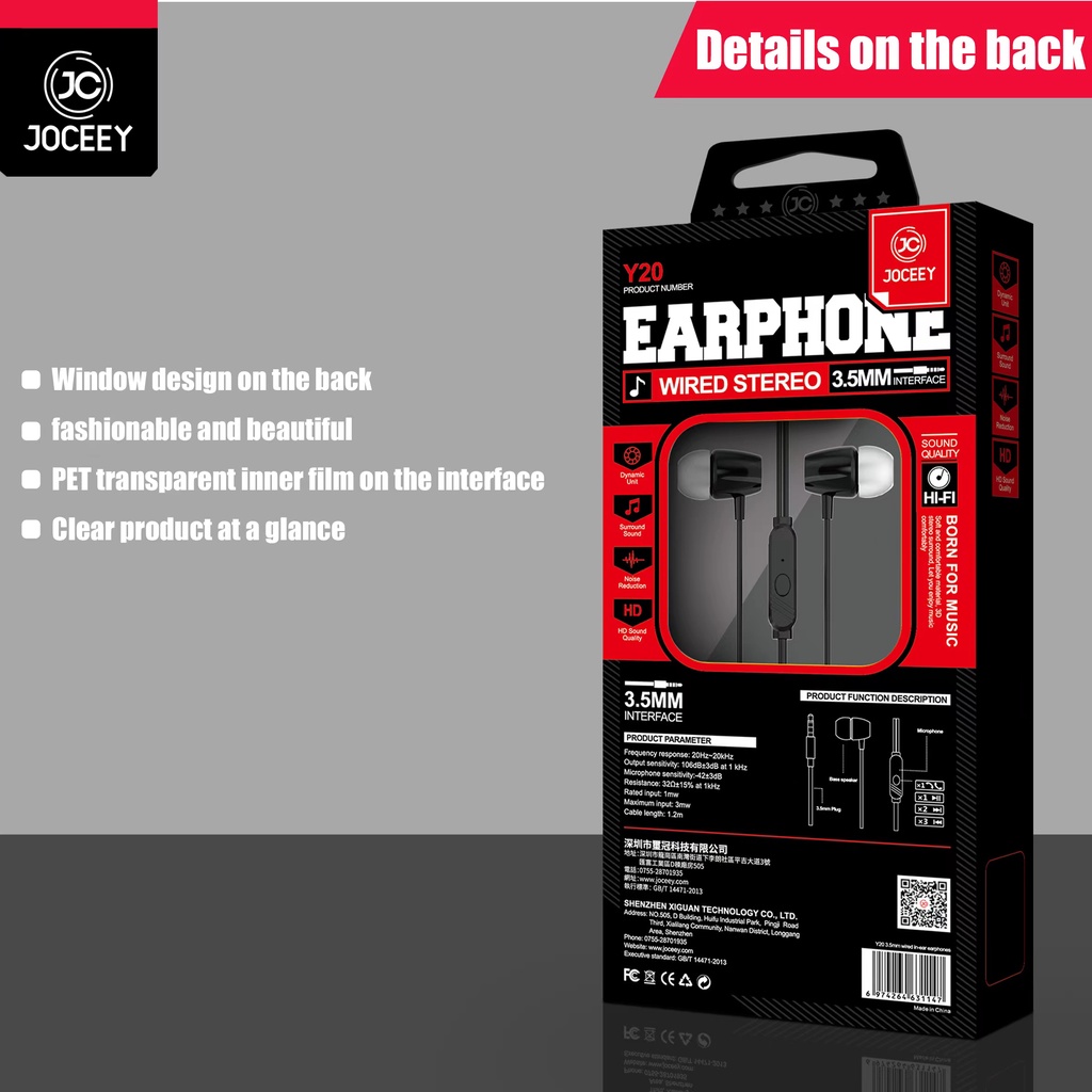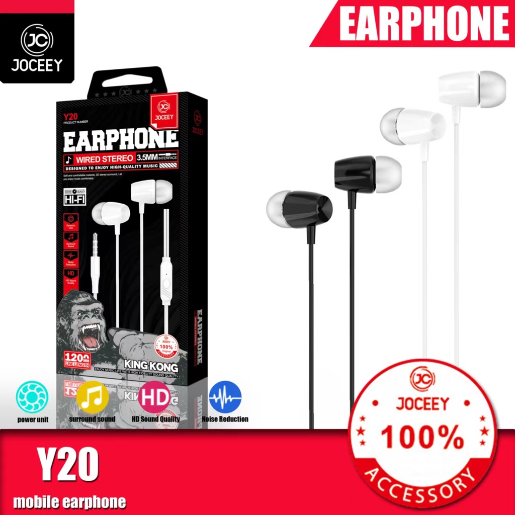 🔥JOCEEY หูฟัง Y20 หูฟังเบสหนัก หูฟังมีไมค์ สายหูฟัง หูฟังพร้อมไมค์ หูฟังเบสหนัก หูฟังหูฟังอินเอียร์ หูฟังโทรศัพท์ หูฟัง