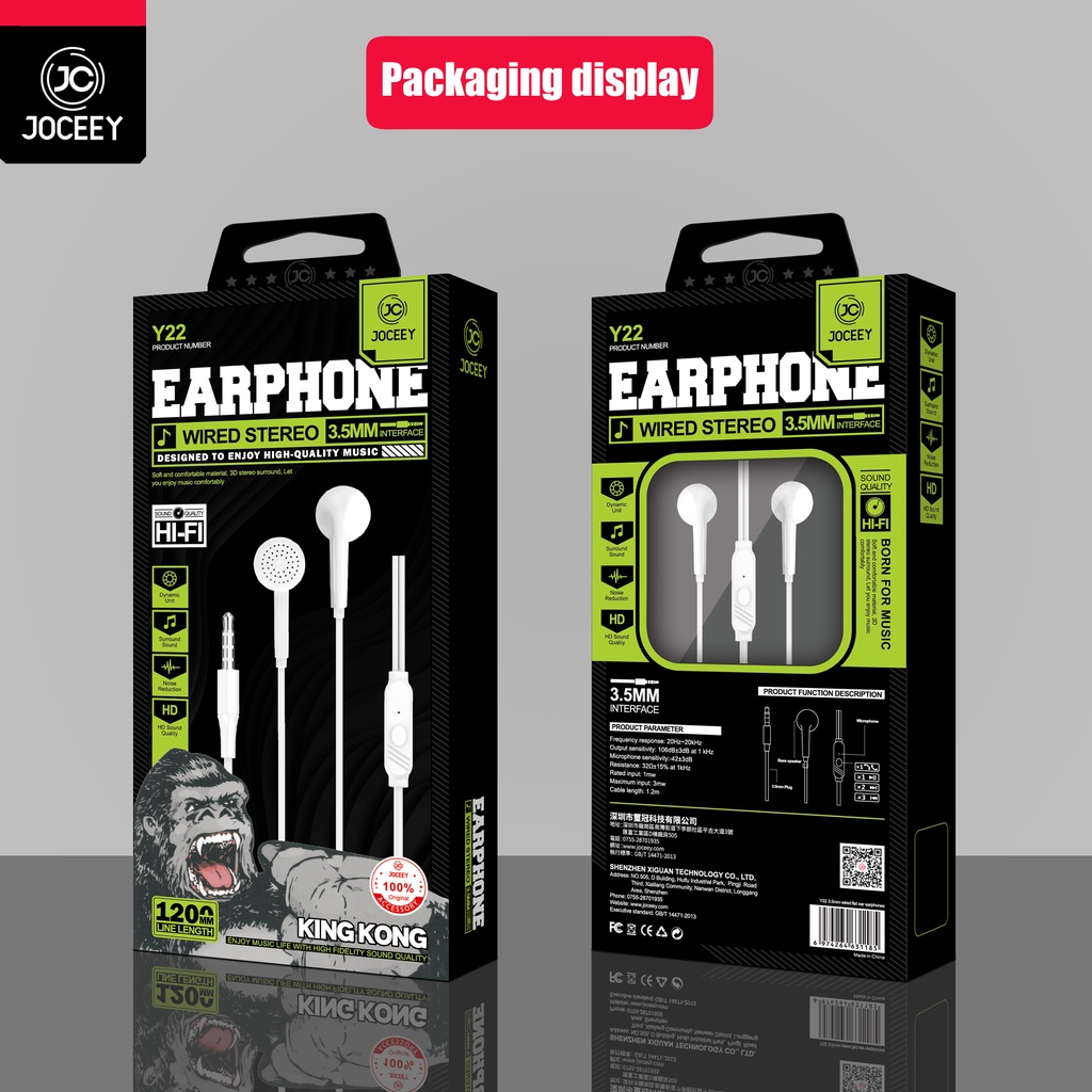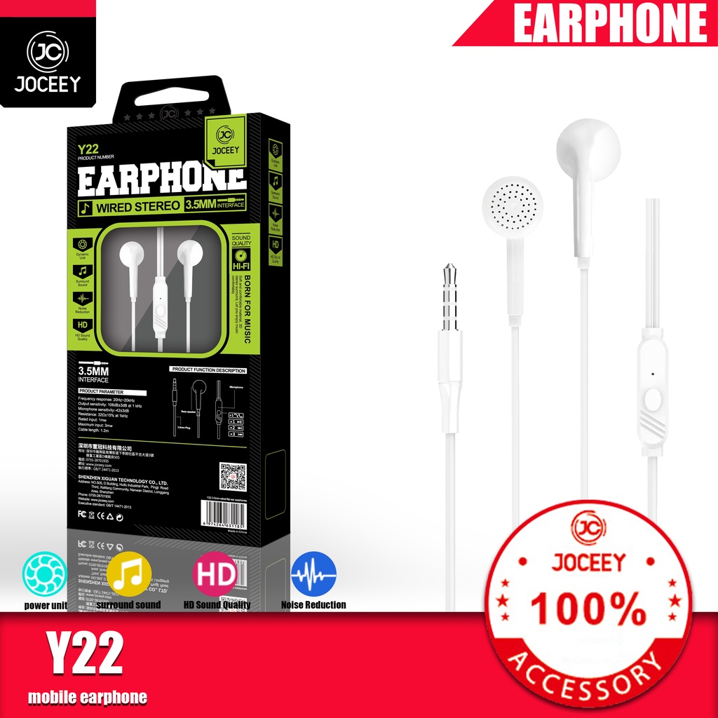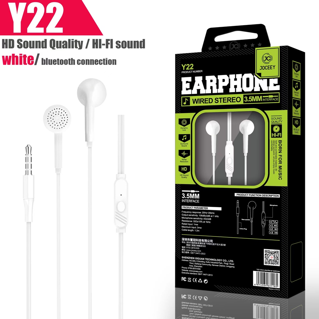 JOCEEY หูฟัง Y22 หูฟังเบสหนัก หูฟังมีไมค์ สายหูฟัง หูฟังพร้อมไมค์ หูฟังเบสหนัก หูฟังหูฟังอินเอียร์ หูฟังโทรศัพท์ หูฟัง