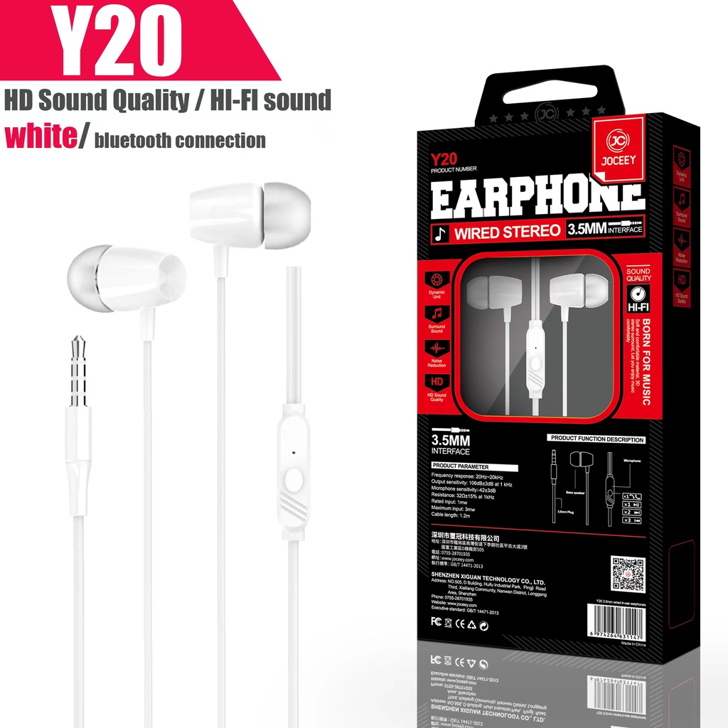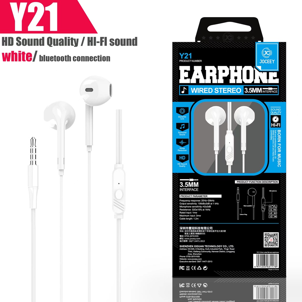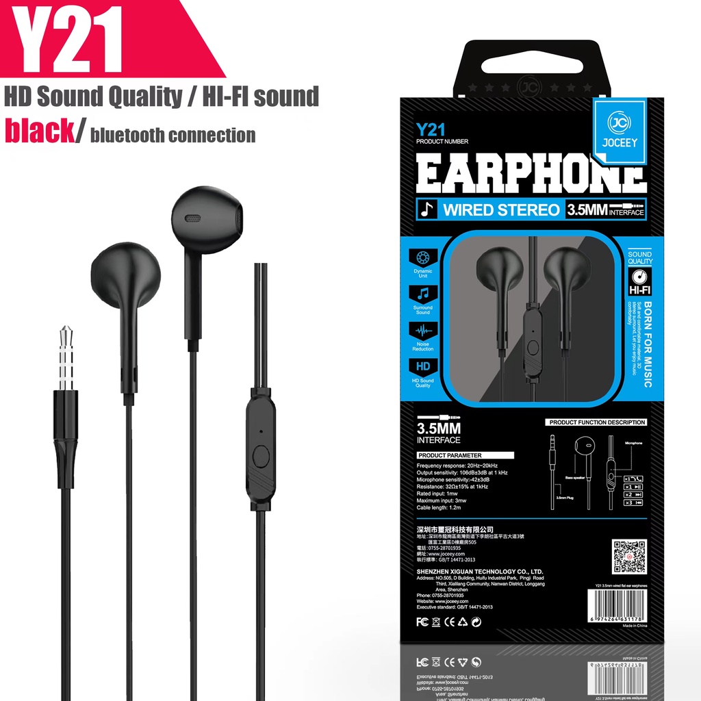 JOCEEY หูฟัง Y22 หูฟังเบสหนัก หูฟังมีไมค์ สายหูฟัง หูฟังพร้อมไมค์ หูฟังเบสหนัก หูฟังหูฟังอินเอียร์ หูฟังโทรศัพท์ หูฟัง