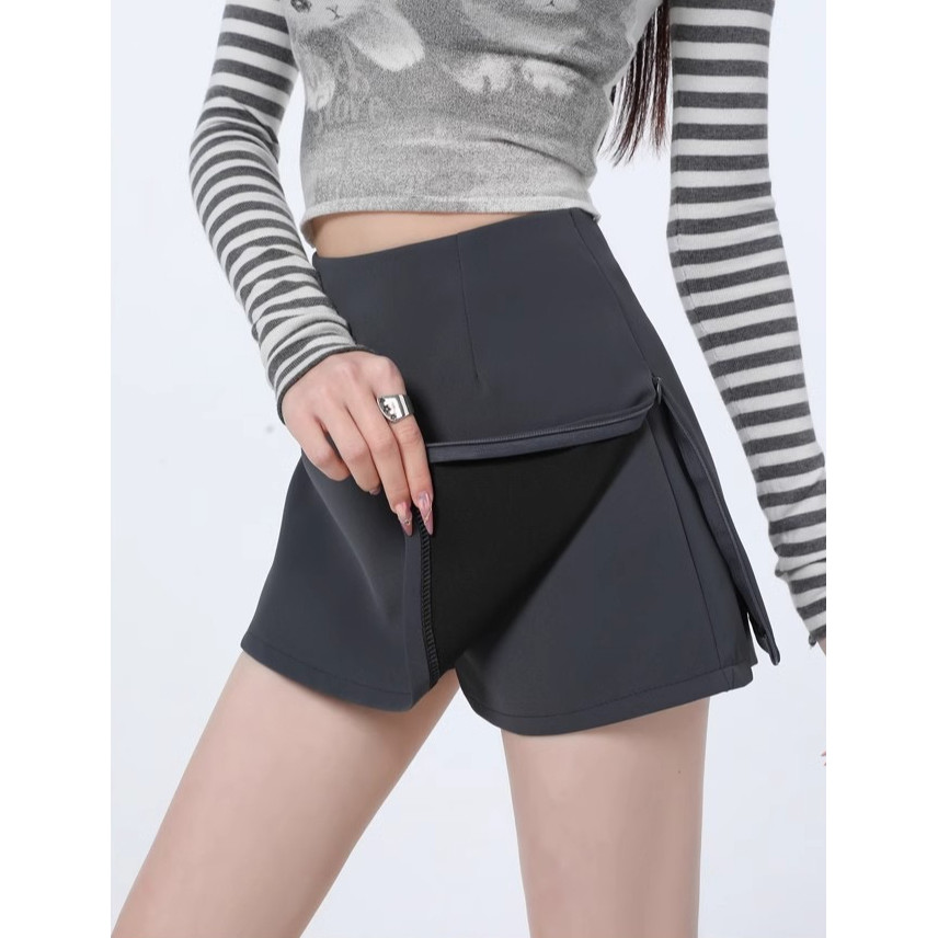 PX กระโปรงกางเกง มินิ S-4XL สาวอวบใส่ได้ กระโปรงกางเกงขาสั้น มีซิปทั้ง 2 ข้าง(รูดได้) ซิปหลัง แมทช์ง่าย สไตล์เกาหลีY2K