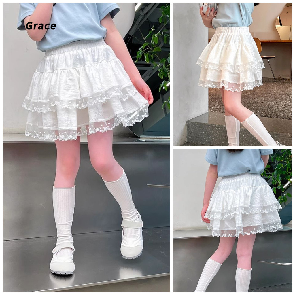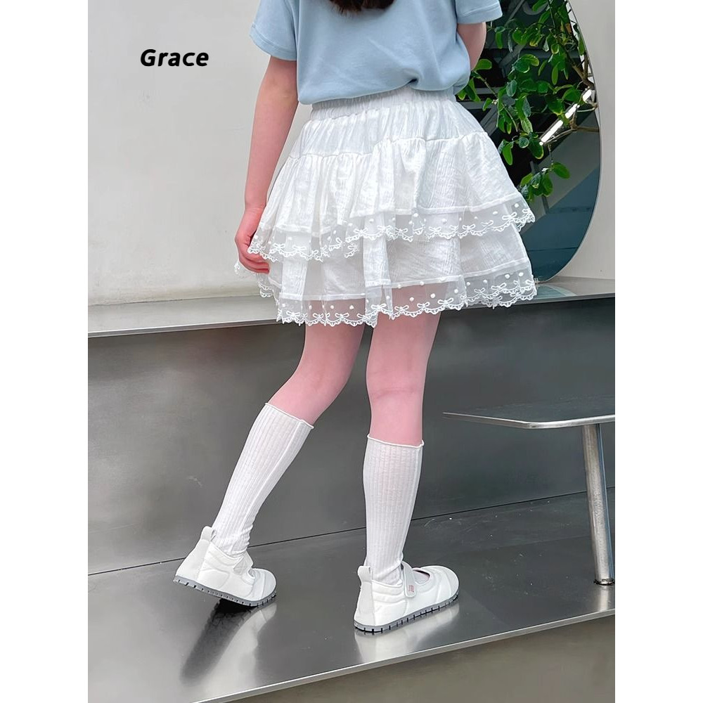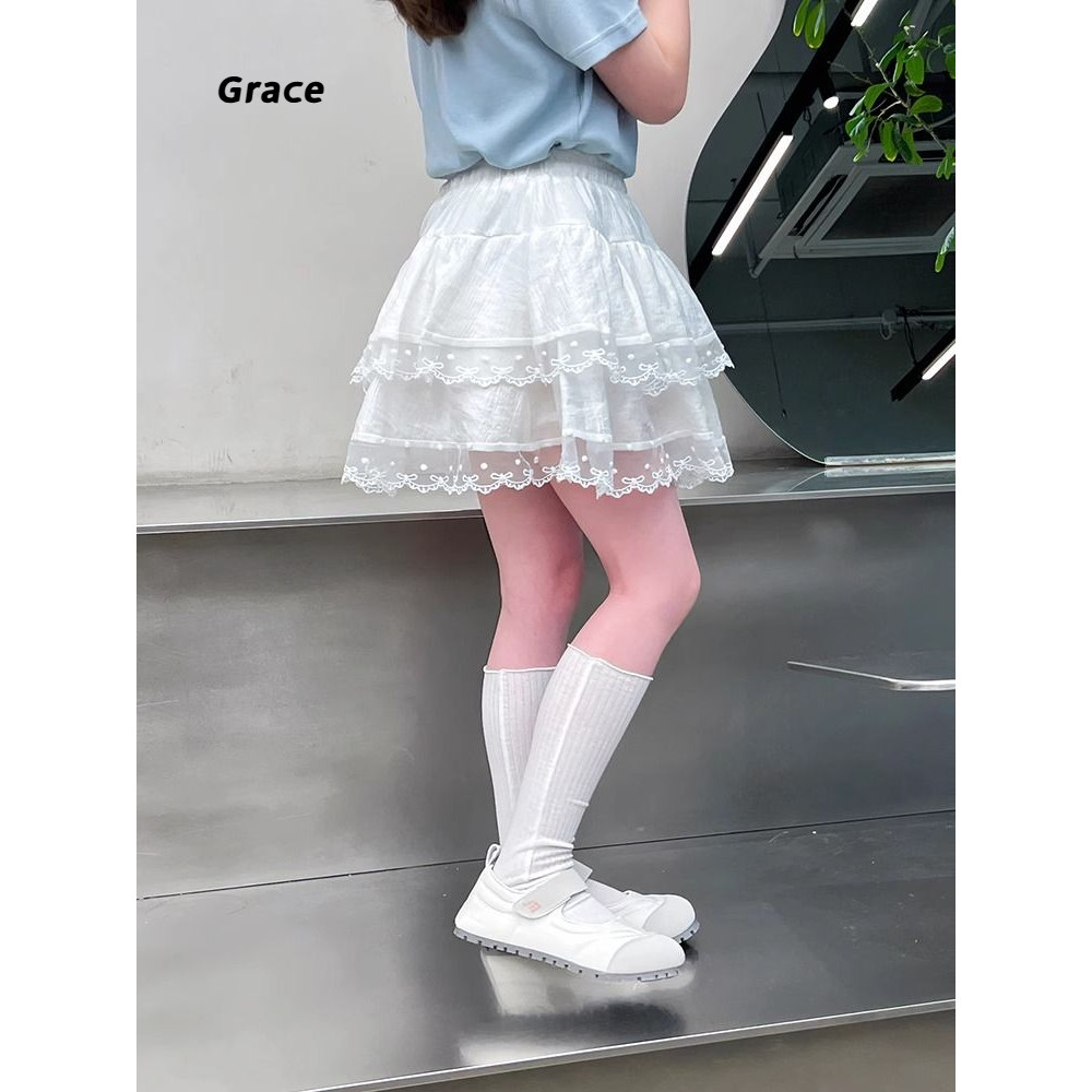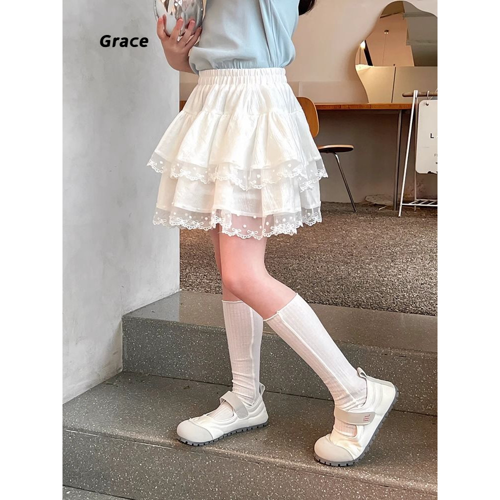 [พระคุณ] (พร้อมสต็อก) สาวลูกไม้กระโปรงสีขาว 2025 ฤดูร้อนสไตล์ใหม่กระโปรงผ้ากอซเค้ก กรัม1534 #