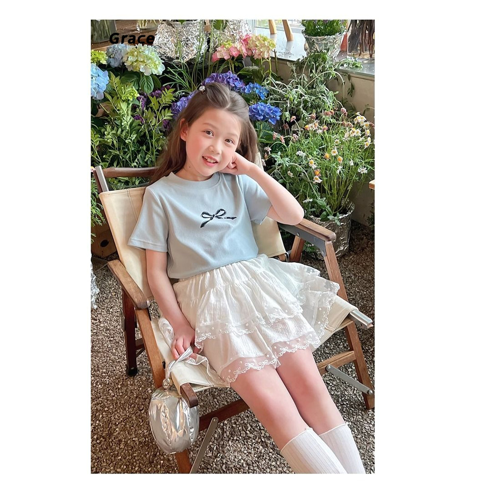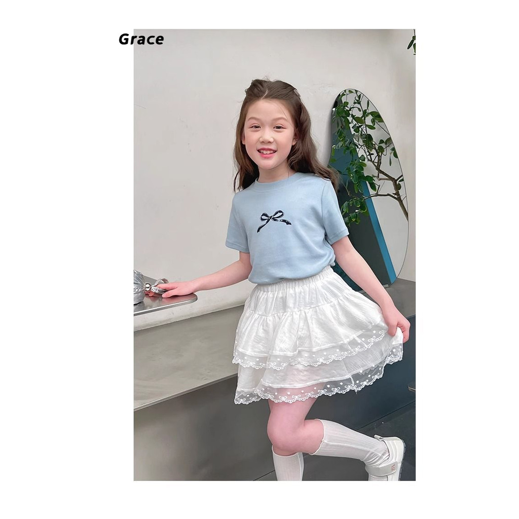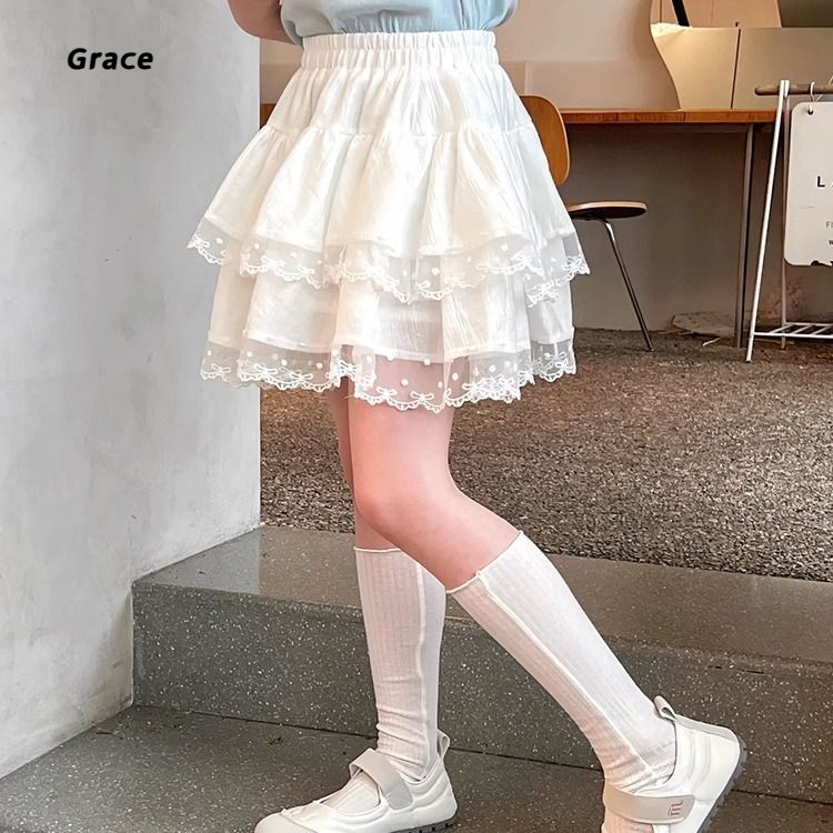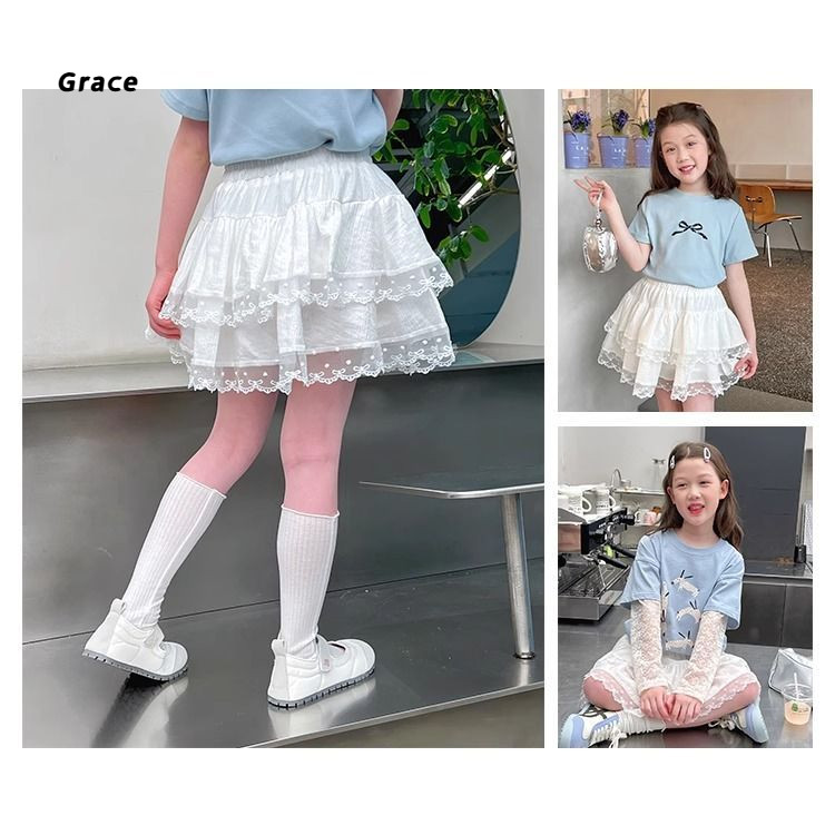 [พระคุณ] (พร้อมสต็อก) สาวลูกไม้กระโปรงสีขาว 2025 ฤดูร้อนสไตล์ใหม่กระโปรงผ้ากอซเค้ก กรัม1534 #