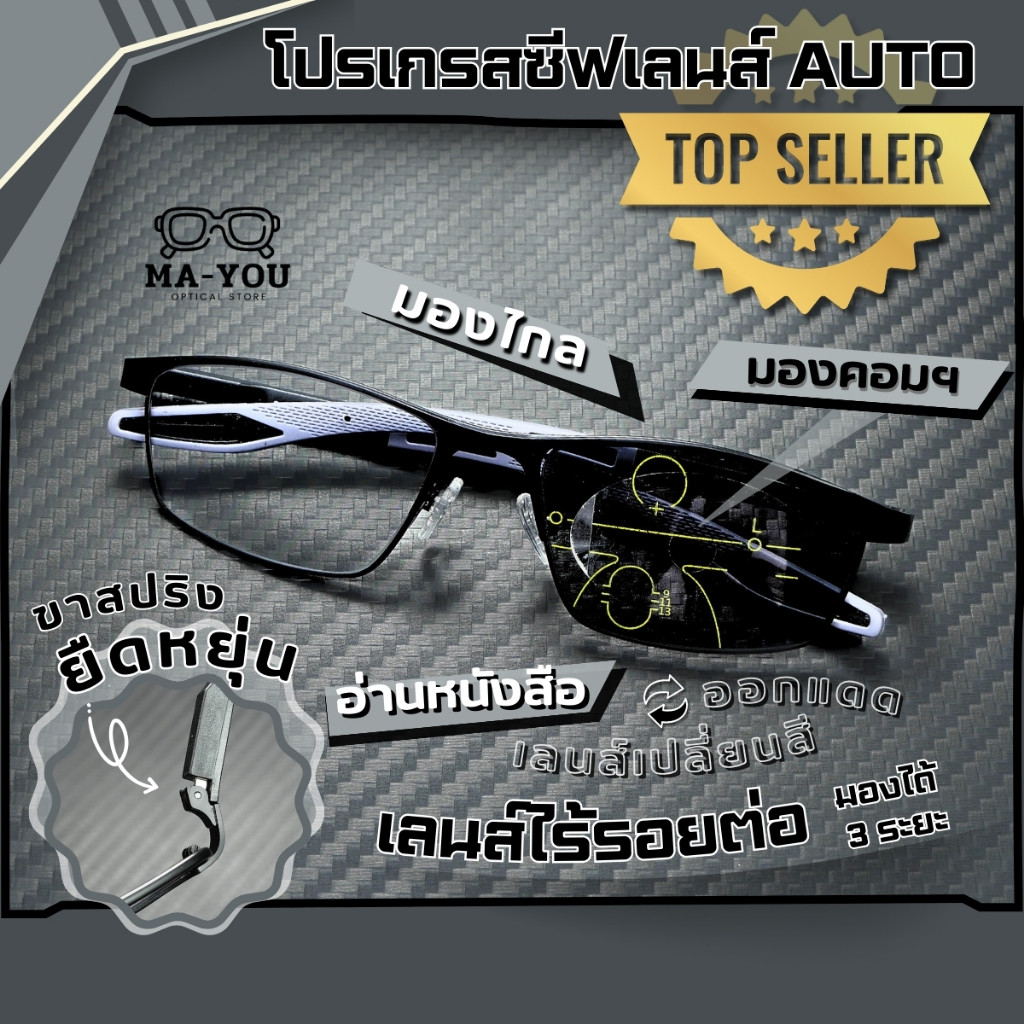 แว่นสายตายาวขาสปริง แว่นสายตายาวโปรเกรสซีฟเลนส์ แว่นสายตายาวโปรเกรสซีฟเลนส์AUTO แว่นสายตายาวโปรเกรสซีฟเลนส์เปลี่ยนสี