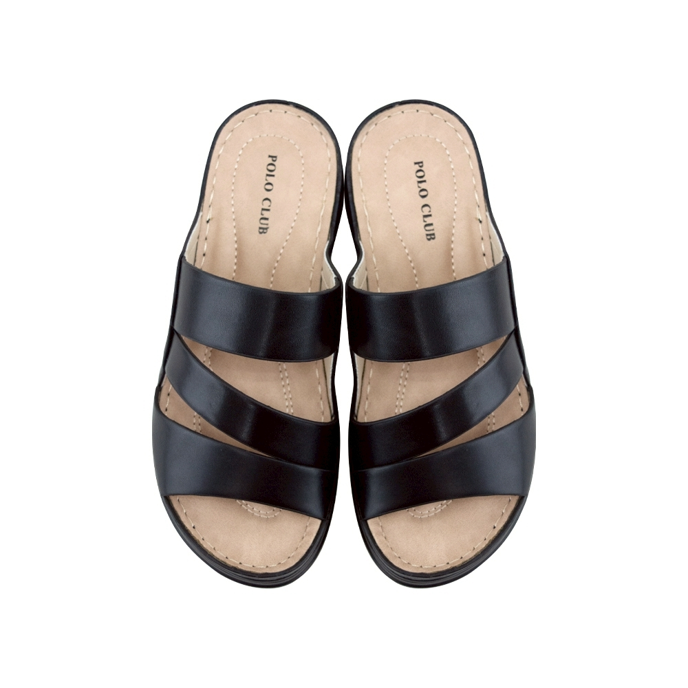 POLO CLUB รองเท้าแตะแบบสวม รุ่น AG-2872 สีดำ l รองเท้าไมโคไฟเบอร์ สูง 1.25 นิ้ว