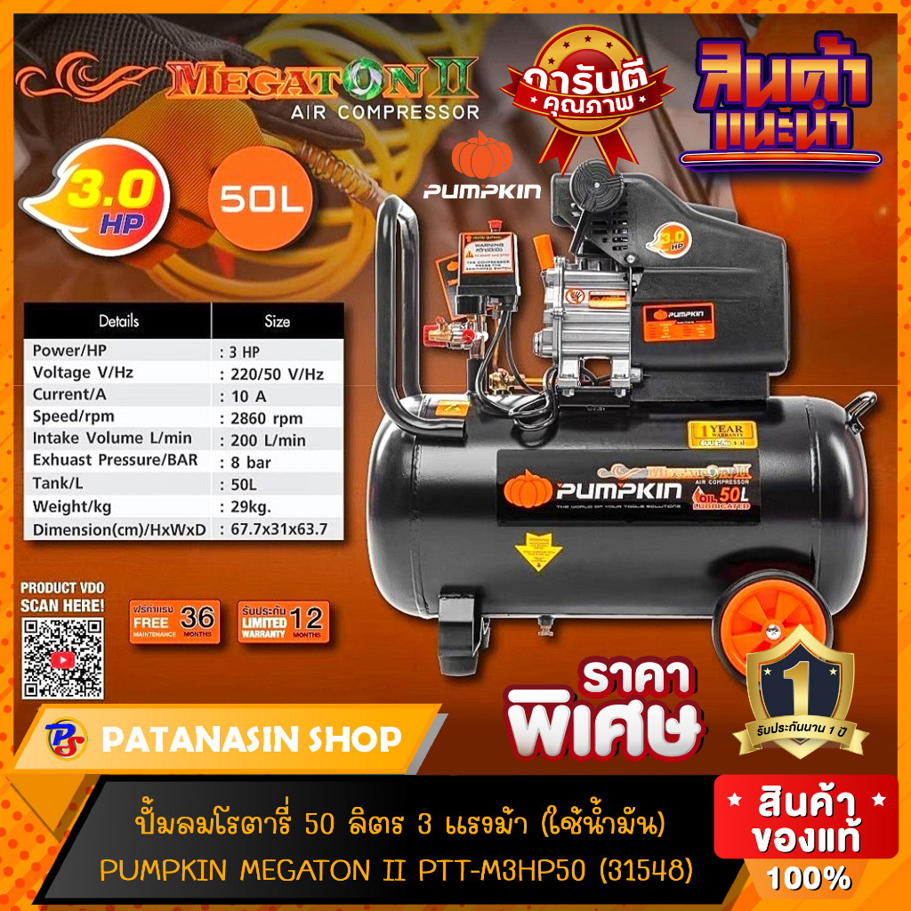 🔥พร้อมส่ง🔥ปั๊มลมโรตารี่ 50 ลิตร Pumpkin MEGATON II 3HP รุ่น 31548