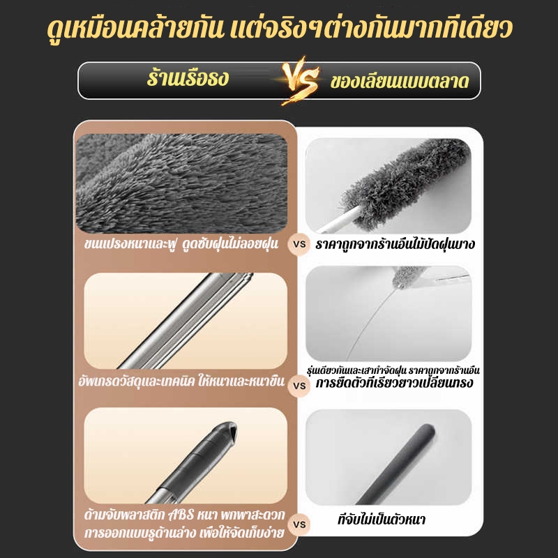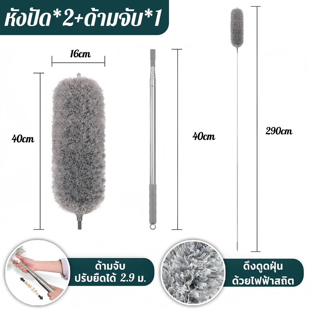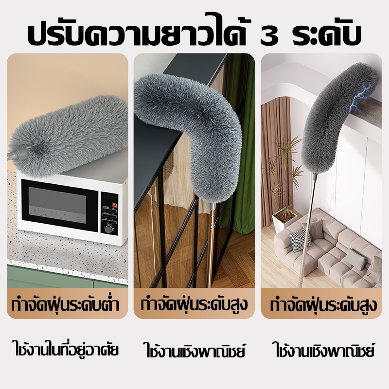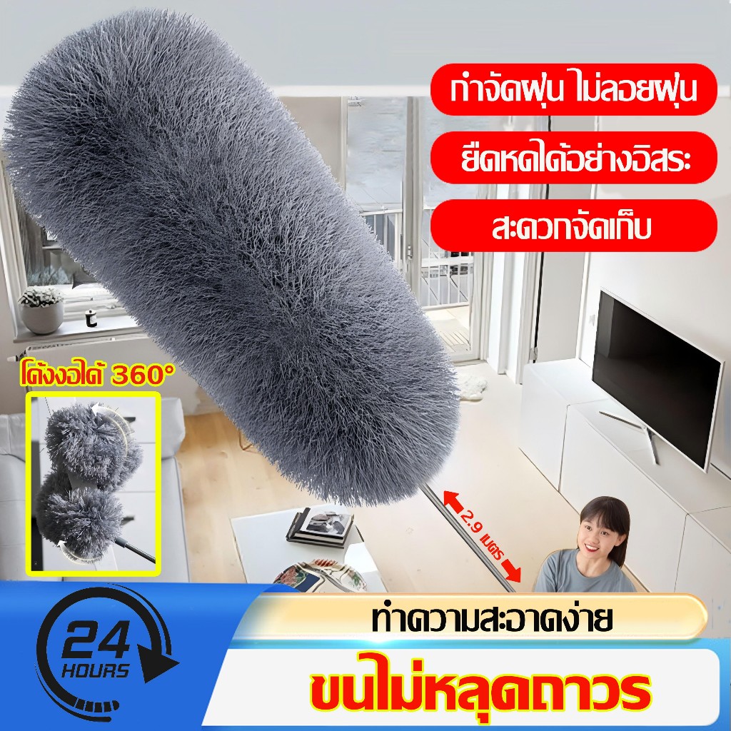 🔥ไม่เคยผลัดขน🔥ไม้ปัดฝุ่น แปรงปัดฝุ่น ไม้กวาดหยากไย่ ปรับได้ 0.8-2.9m ปรับความงอ ฝุ่นไม่ปลิว ทำความสะอาดได้ทุกซอก