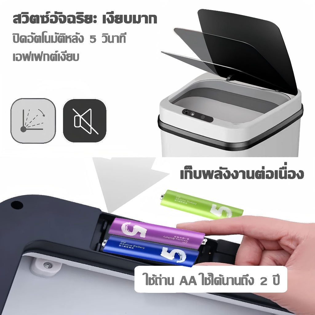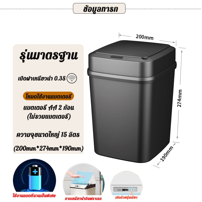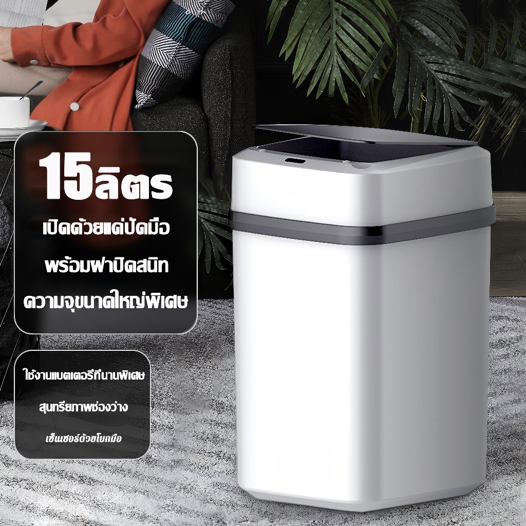 ⚡รับประกัน 10 ปี⚡ถังขยะอัจฉริยะ ถังขยะ ความจุสูงสุด 15 ลิตร ตอบโจทย์ความต้องการครอบครัวส่วนใหญ่ ถังขยะอัตโนมัติ