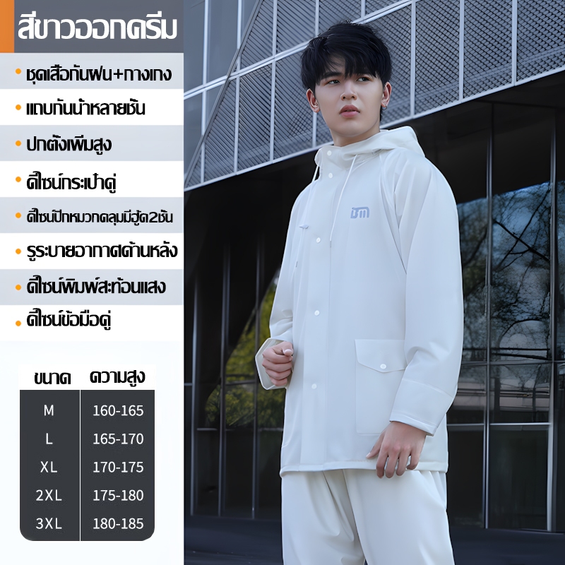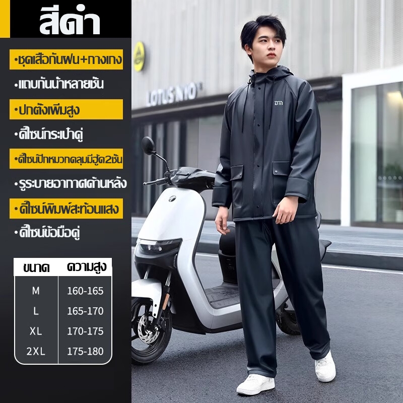 🌧20 ปีไม่เสีย🌧ชุดกันฝน เสื้อกันฝน เสื้อกันฝนผู้ใหญ่ กางเกงและหมวก กันน้ำและทนทานมีแถบสะท้อนแสง Rain Suit