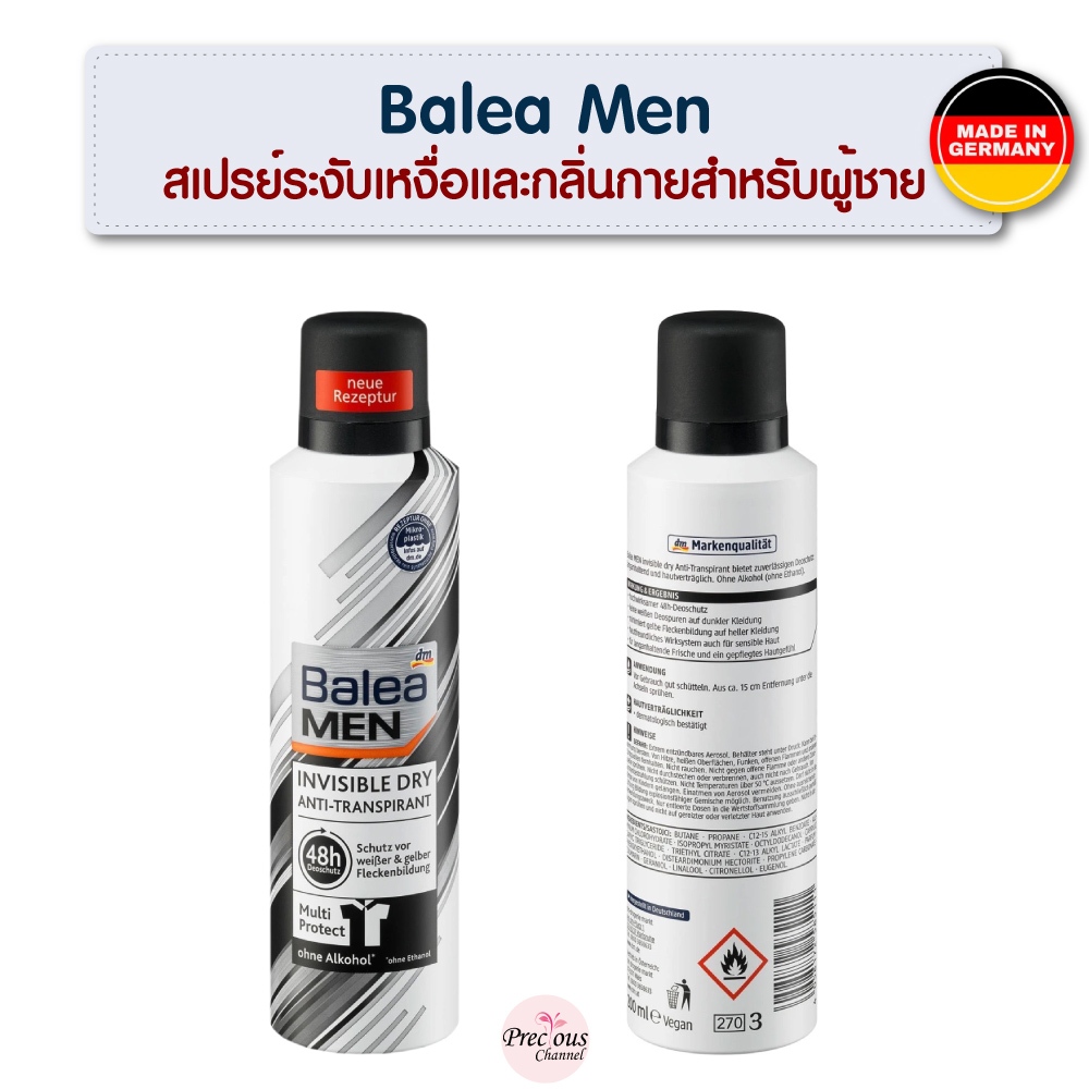🇩🇪 Balea Men สเปรย์ระงับเหงื่อและระงับกลิ่นกายสำหรับผู้ชาย Balea Antitranspirant Deospray จากเยอรมัน