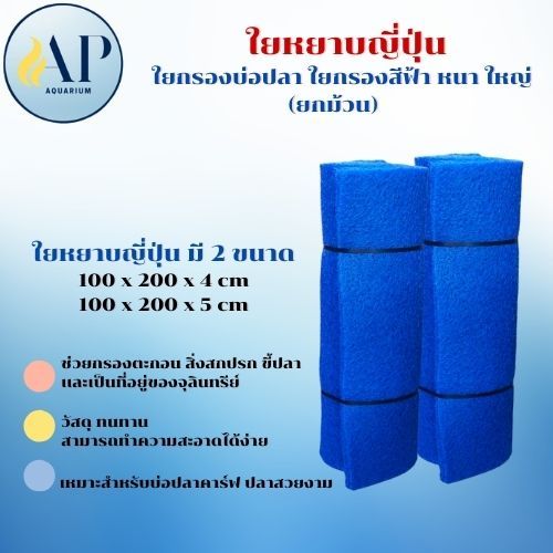 Filter Mat ใยหยาบญี่ปุ่นมาสครา อย่างหนา ใหญ่ ขายยกม้วน ใยกรองบ่อปลา ใยกรองสีฟ้า หนา 4/5 cm
