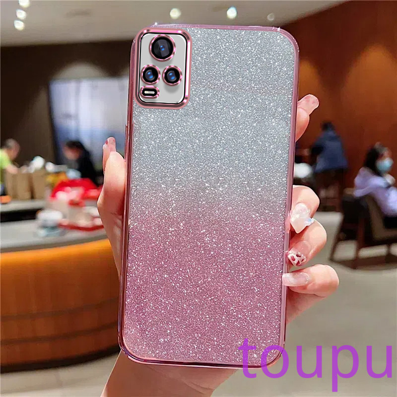 เคสโทรศัพท์สําหรับ vivo V20 V20 PRO v20se v23e v23 v21 v21e 5G แฟชั่น Glitter Electroplating โปร่งใสกรณีเชลล์บรรเทาความเครียดที่มีสีสันลูกปัดหมีวงเล็บพับ