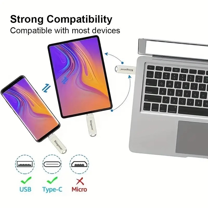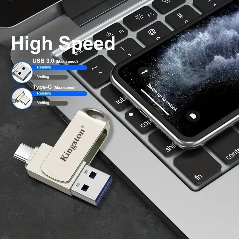 2TB กันน้ํา Kingston 2IN1 OTG แฟลชไดรฟ์ Type-C โทรศัพท์สมาร์ท PenDrive สําหรับ PC/Android/iPhone 15