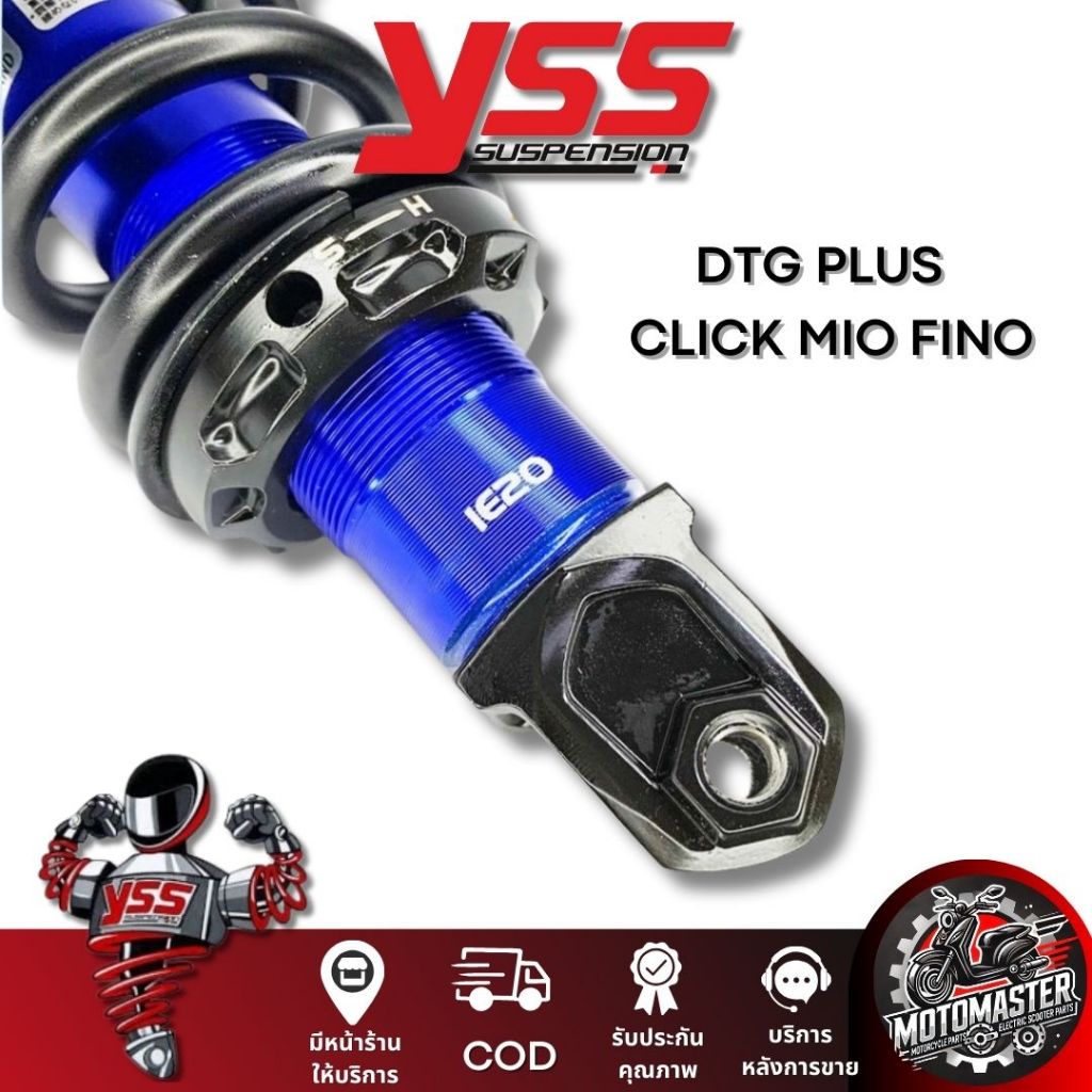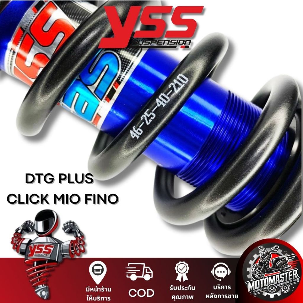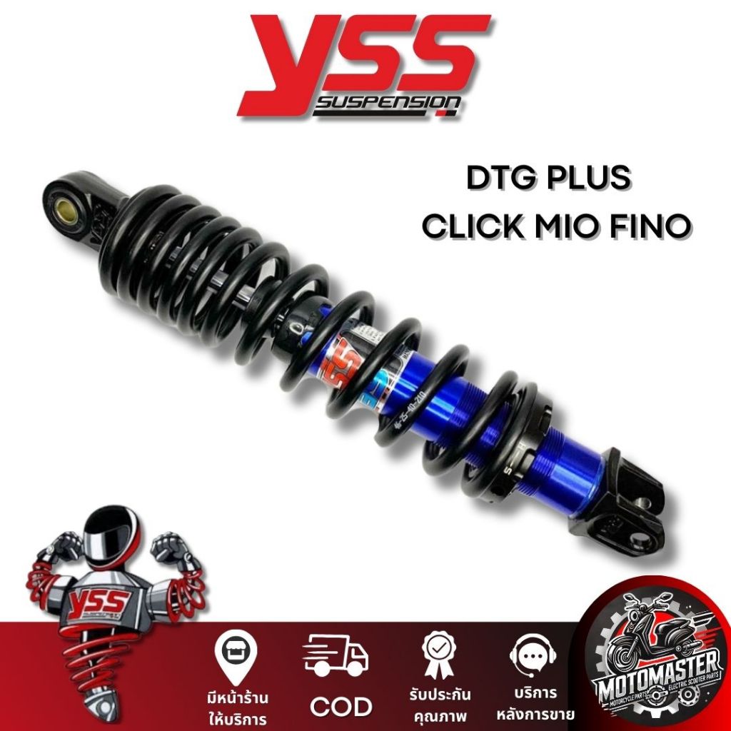 โช๊คหลัง DTG PLUS CLICK110 MIO115 FINO115 BLUE/BLACK สูง 310 mm. โช๊คอัพ YSS แท้ โช้ค สำหรับ คลิ๊ก มีโอ ฟีโน่ โช๊คเดี่ยว