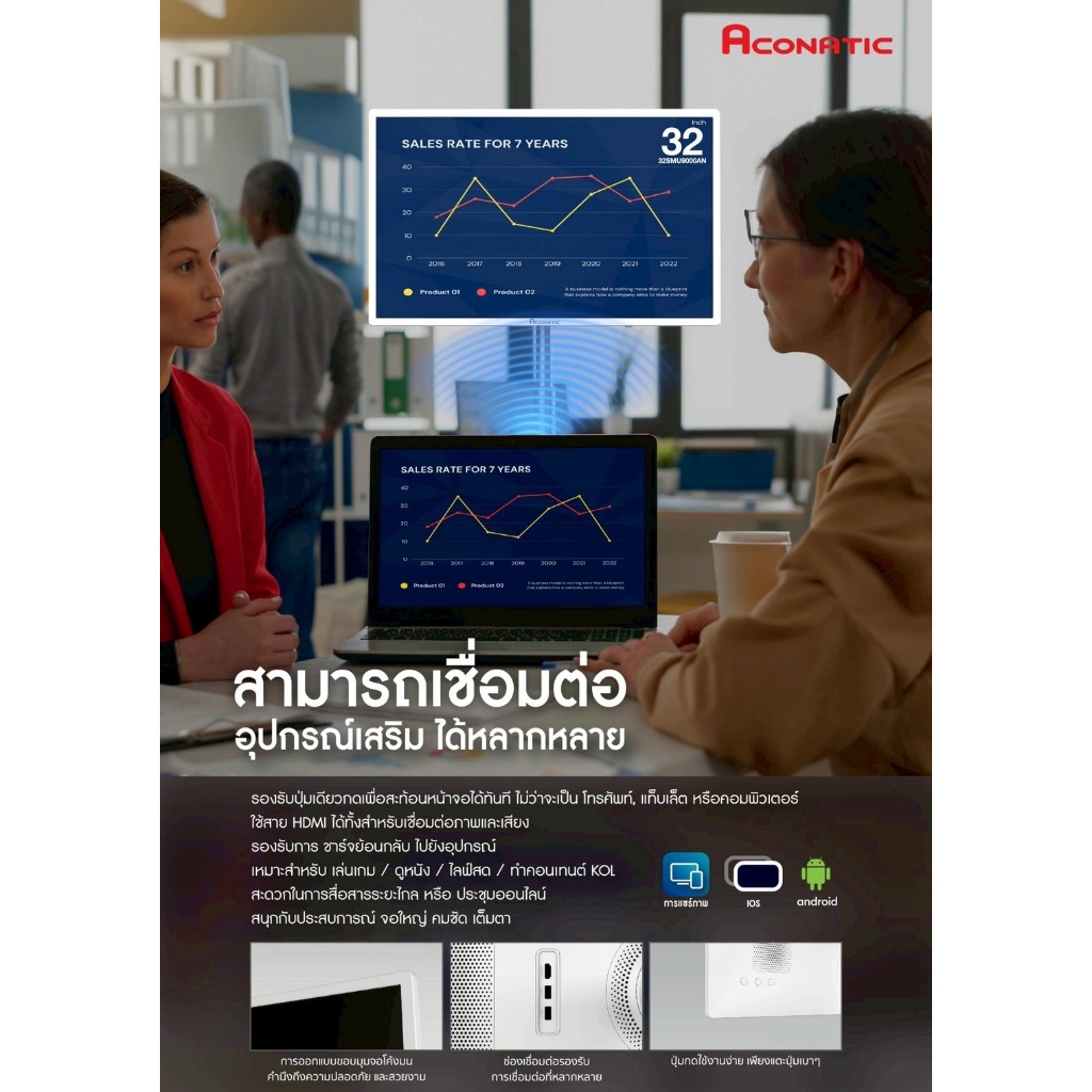 Aconatic จอมอนิเตอร์ 32 นิ้ว UHD 4K Android 13 รุ่น 32SMU9000AN Touch Screen Monitor Wi-Fi 6