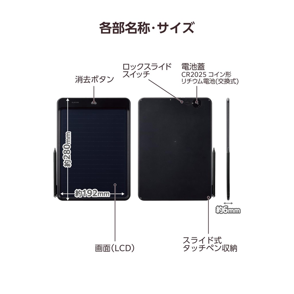 ส่งตรงจากญี่ปุ่น ELECOM สมุดจดบันทึกอิเล็กทรอนิกส์ 12 นิ้ว ฟังก์ชั่นล็อค ลบข้อมูลด้วยปุ่มเดียว แบตเตอรี่เปลี่ยนได้ หนังสือคำศัพท์ กระดานเขียน กระดานข้อความ กระดานเขียนและลบได้ สีดำ EP-12BK-AZ ญี่ปุ่น ใหม่ ผลิตในญี่ปุ่น
