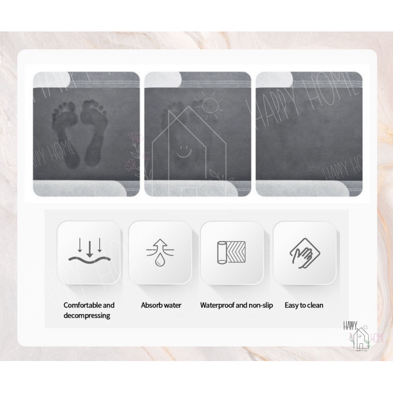 ☀️พรมยางเช็ดเท้า พรมเช็ดเท้า ลายหินอ่อน ดูดซับน้ําได้ดี กันลื่น ทำความสะอาดได้ ขนาด 40*60ซม.