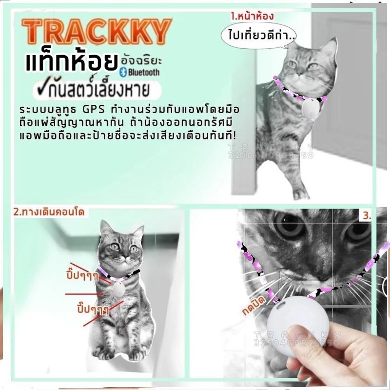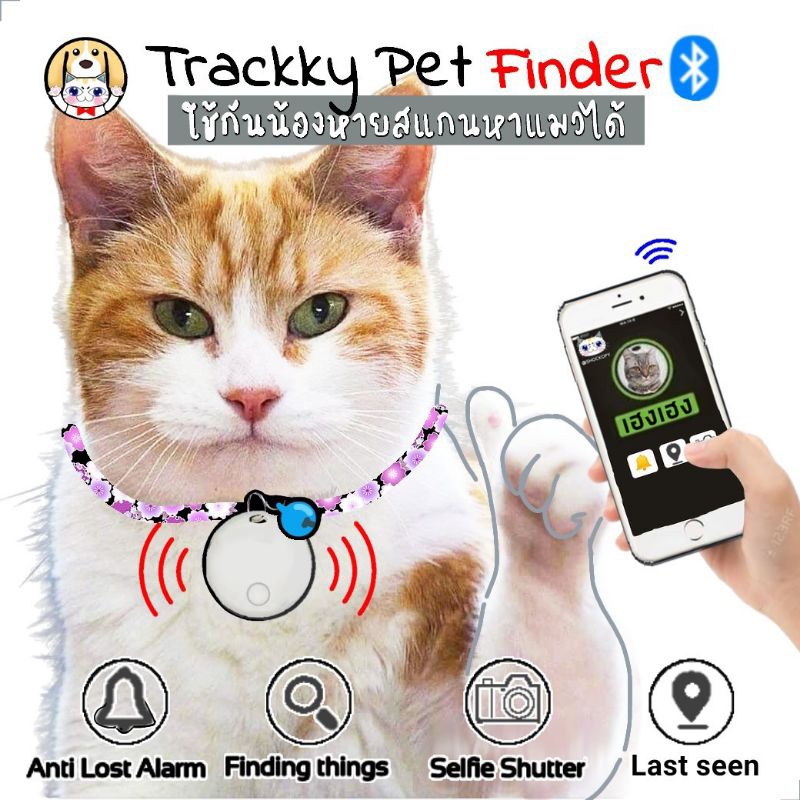 แท็กบลูทูธ กันแมวหาย Pet Finder แทร็คกี้ ไว้ห้อยปลอกคอสุนัข หมา ส่งไวจากกทม.