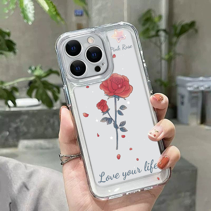 🔥ในสต็อก🔥ทาสีดอกกุหลาบแดงที่สวยงาม IPhone 16 15 11 13 14 12 Pro Max 7Plus X Xr Xs Max TPU Waterproof Phone Case