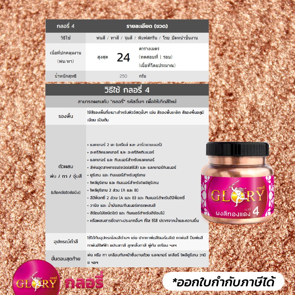 ผงสี พิงค์โกลด์ โรสโกลด์ ทองแดง GLORY 4 สีนาก pinkgold rosegold เงาโลหะสุดๆ(มีใบกำกับภาษี)(250กรัม)