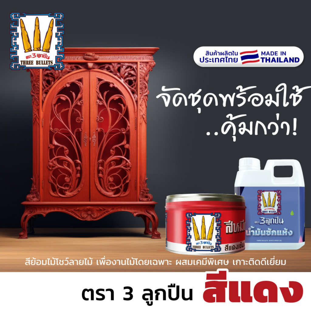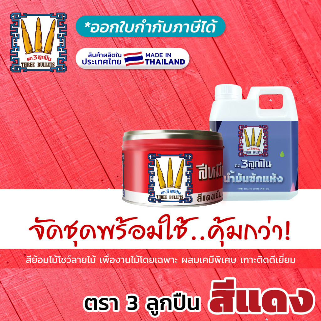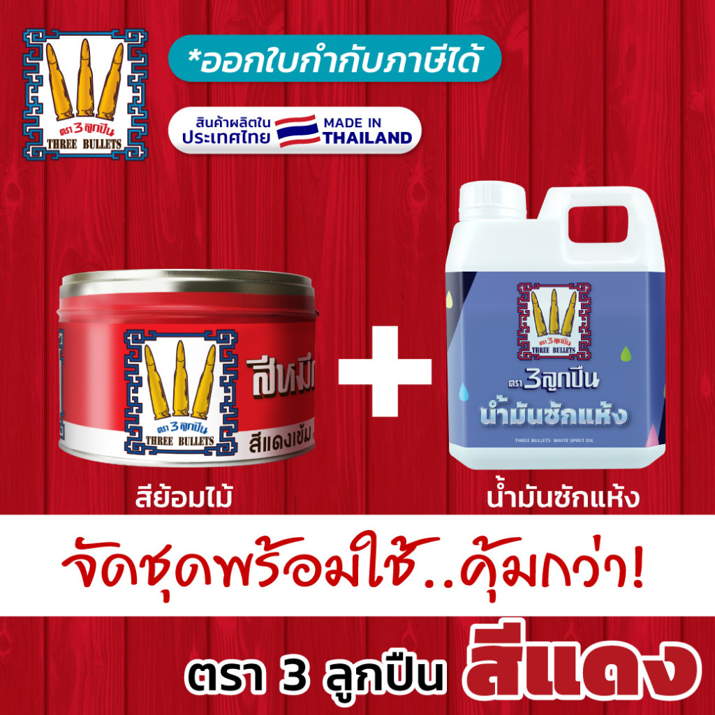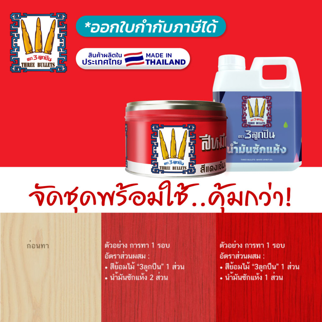 "ตรา3ลูกปืน" สีโชว์ลายไม้สีแดง + น้ำมันซักแห้ง...ยกชุดผสมแล้วทาได้เลย ผลิตในไทย (มีใบกำกับภาษี)