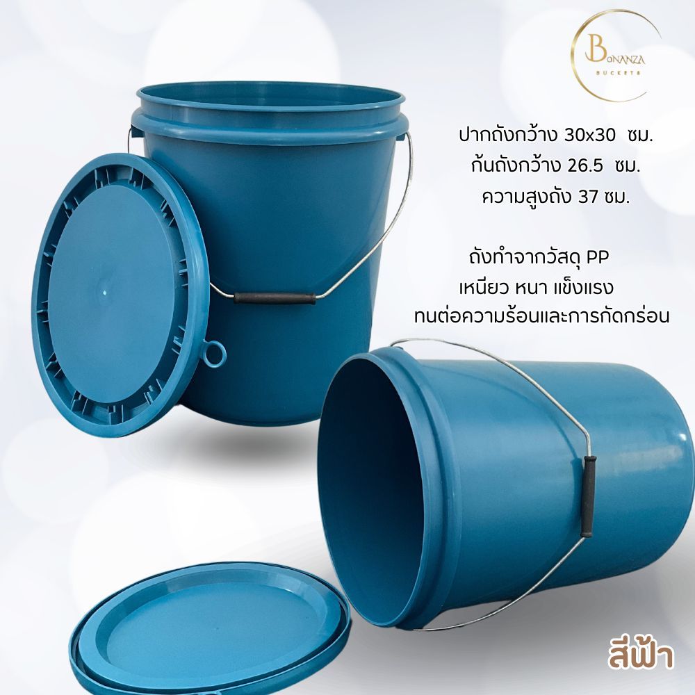 พร้อมส่งถังน้ำ ถังพลาสติก มือ 1 ขนาด 20 ลิตร หูหิ้วเหล็ก + ฝา 1 ห่วง ทำจากเม็ดพลาสติก โพลีโพรพิลีน (PP)