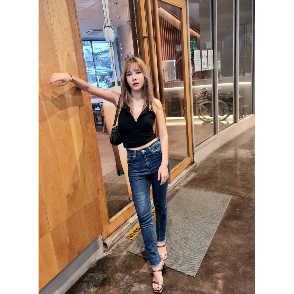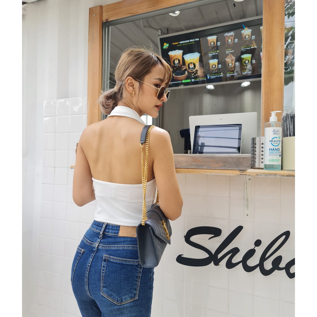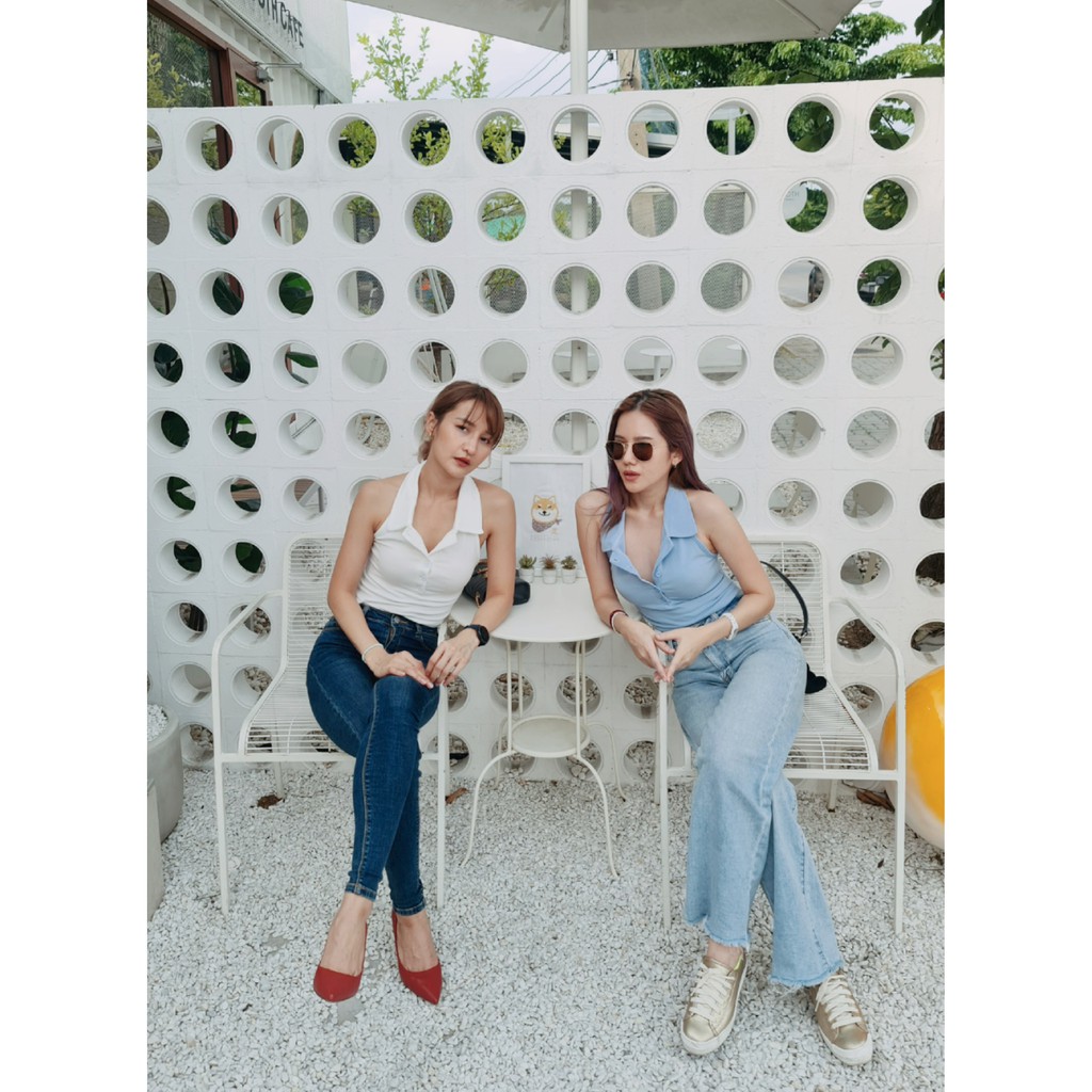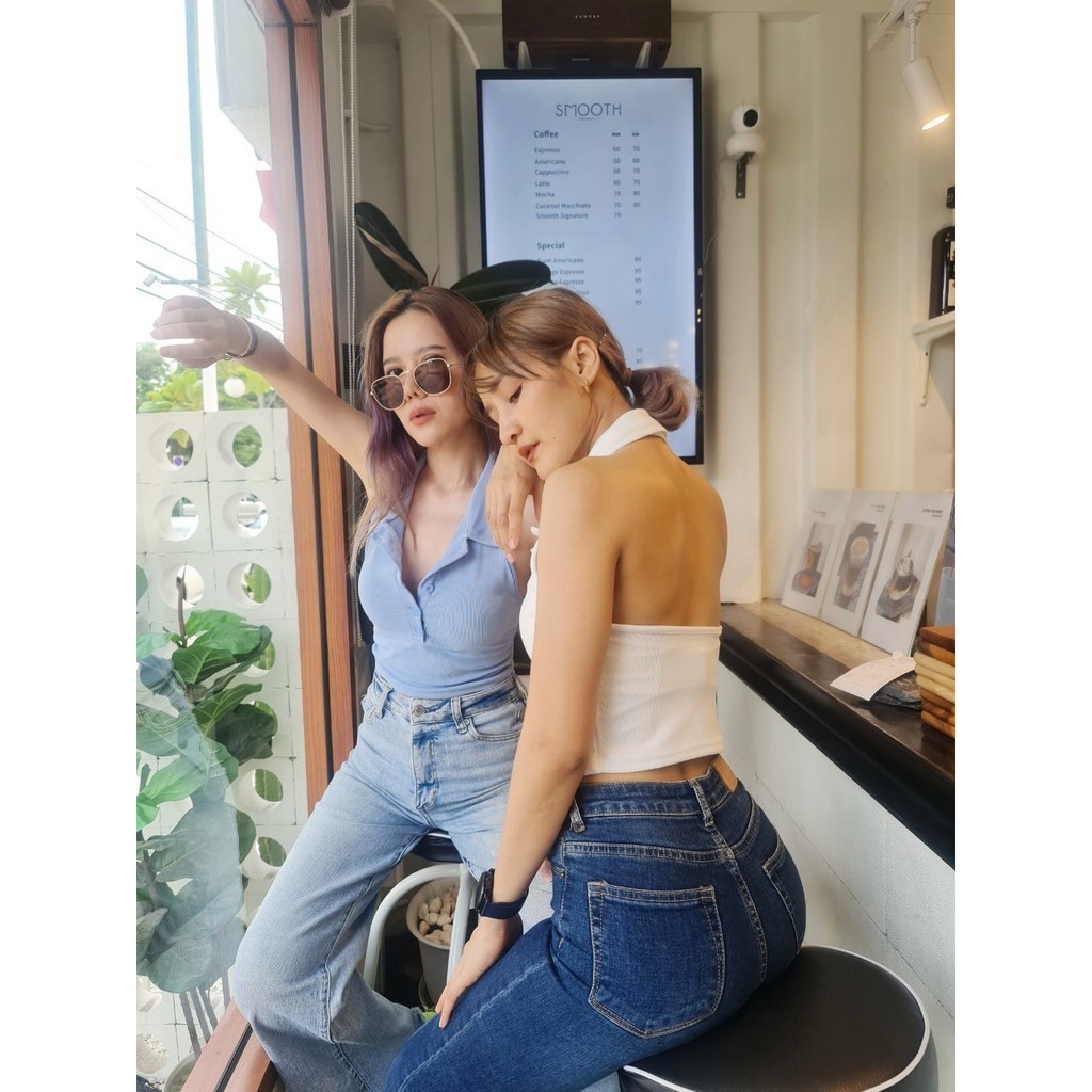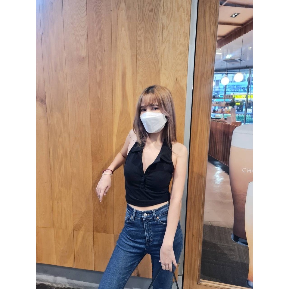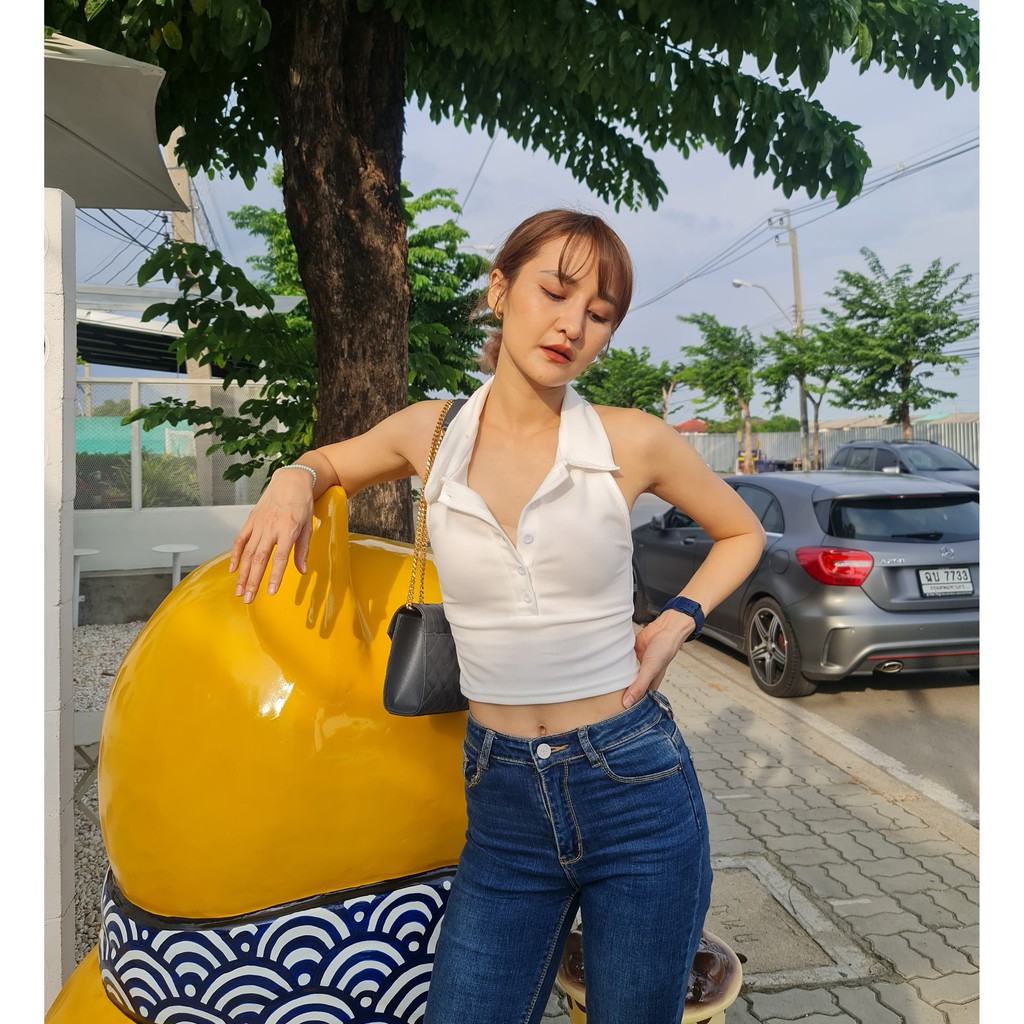 Retro Backless Crop Top เสื้อครอบโชว์หลัง กระดุมหน้า คอโปโล แซ่บ มาแรงงสุด