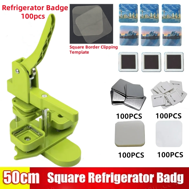 【COD + การจัดส่ง 2 วัน】50มิลลิเมตรสแควร์ตู้เย็นตราเครื่อง100ชุดแม่เหล็กซัพพลายหมัดเครื่องกดสําหรับทําแม่เหล็กติดตู้เย็น/หมุดป้าย