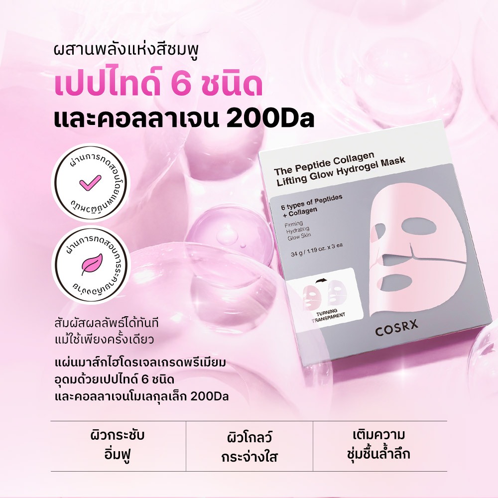 [COSRX OFFICIAL] The Peptide Collagen Lifting Glow Hydrogel Mask เดอะ เปปไทด์ คอลลาเจน ลิฟติ้ง โกลว์ ไฮโดรเจล มาส์ก