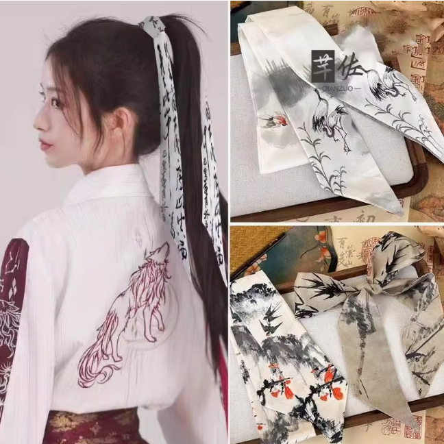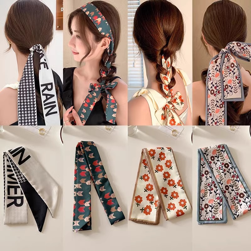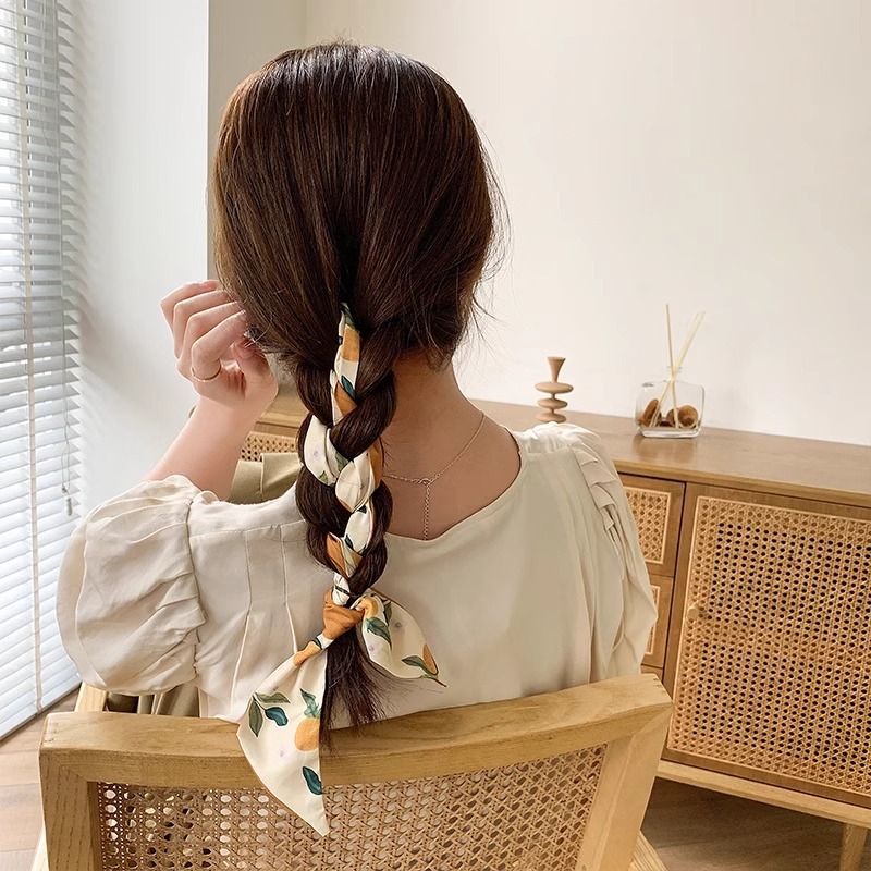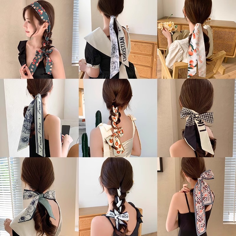 ผ้าพันคอไหมยาวสไตล์ฝรั่งเศสวงผมหญิง2026แบบใหม่ถักผมเชือกผมสไตล์เกาหลีโบว์ลําแสงผูกหัวเชือกผม
