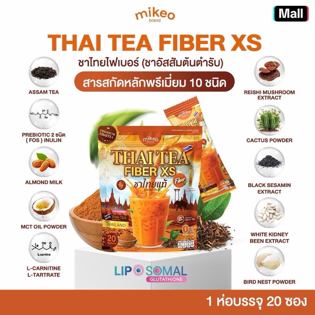 ไฟเบอร์ มิเกว Mikeo 3 สูตร ใหม่ กลูต้านมชมพู,ชาไทยไฟเบอร์,มัทฉะไฟเบอร์ 1ห่อ มี20ซอง