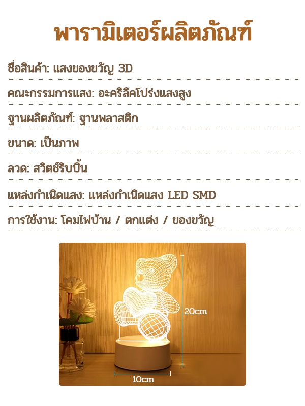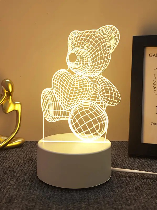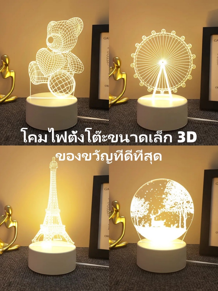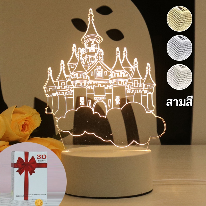3Dโคมไฟอะคริลิค LED ตกแต่งห้องนอน คริสมาสต์ ของขวัญปีใหม่ โคมไฟตั้งโต๊ะ สายชาร์จ USB 3 สี