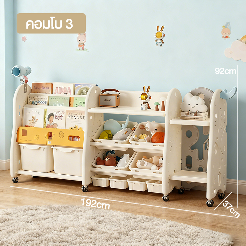 baby safety☁️ ชั้นวางของเล่น ชุดจัดเก็บเด็กปรับระดับได้ (โต๊ะ+เก้าอี้+ชั้นวาง)รับประกัน3ปี+สอนยูทูบ
